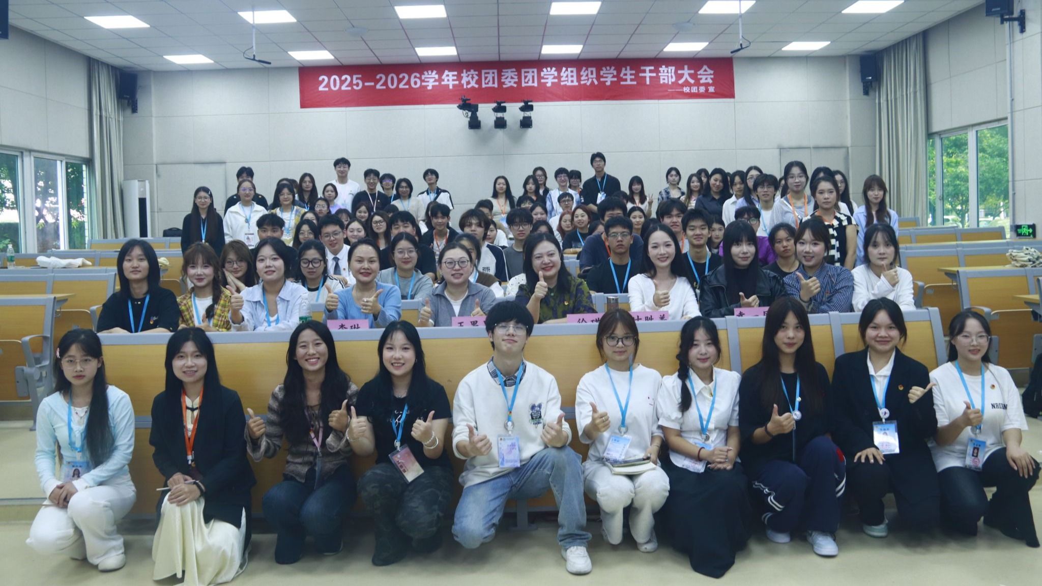 9月23日,pg电子2025-2026学年校团委团学组织学生干部大会在犀浦校区明德楼一楼阶梯教室召开。校团委书记徐瑾,团委指导老师,犀浦校区和邛崃产教园区校院两级团学组织学生干部200余人参加会议。