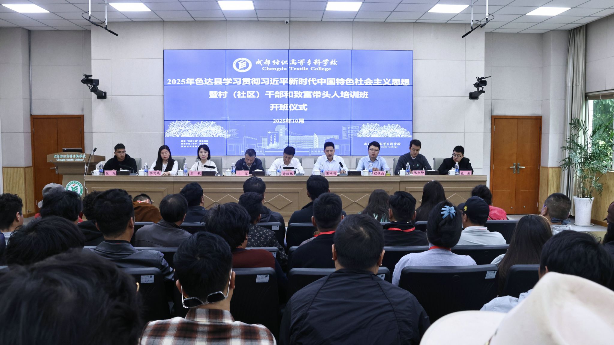 10月13日,2025年色达县学习贯彻习近平新时代中国特色社会主义思想暨村(社区)干部和致富带头人培训班开班仪式在pg电子明德楼第二会议室举行。学校党委常委、副校长蒲冰远致辞,四川省民族宗教事务委员会机关党委专职副书记、机关纪委书记亓振林宣布开班。