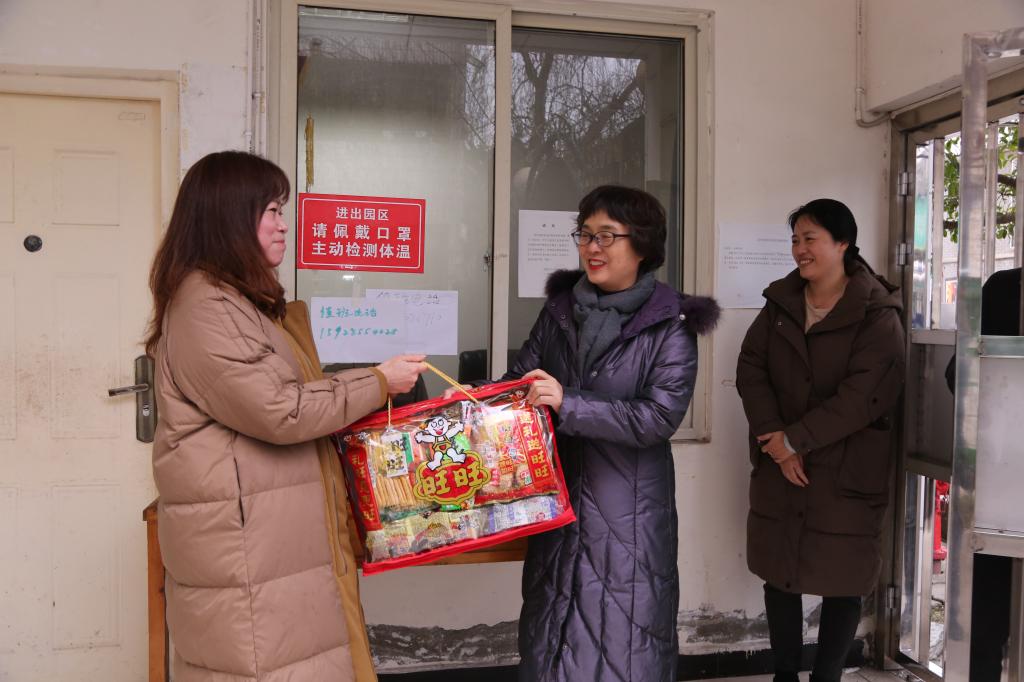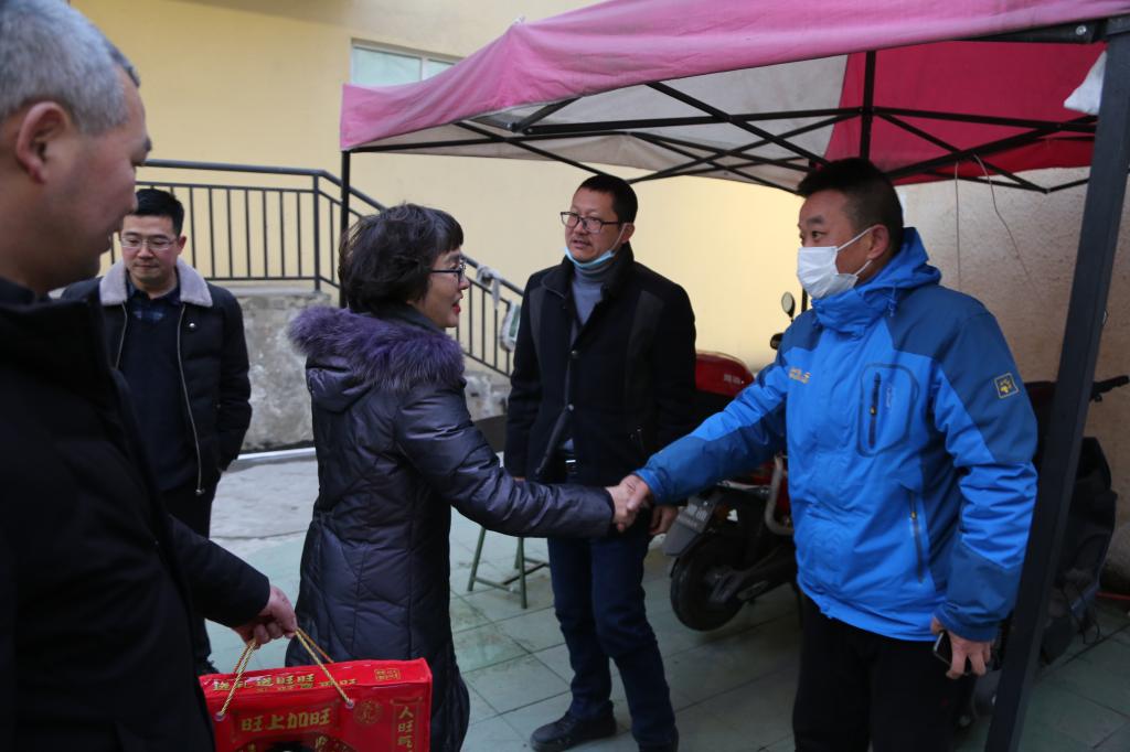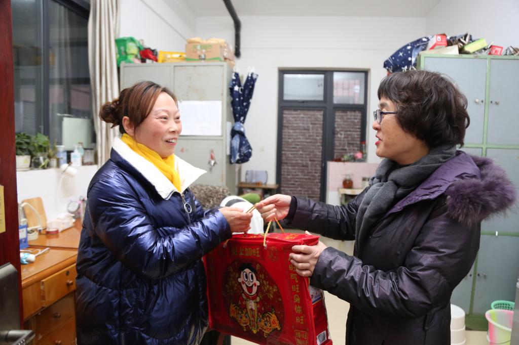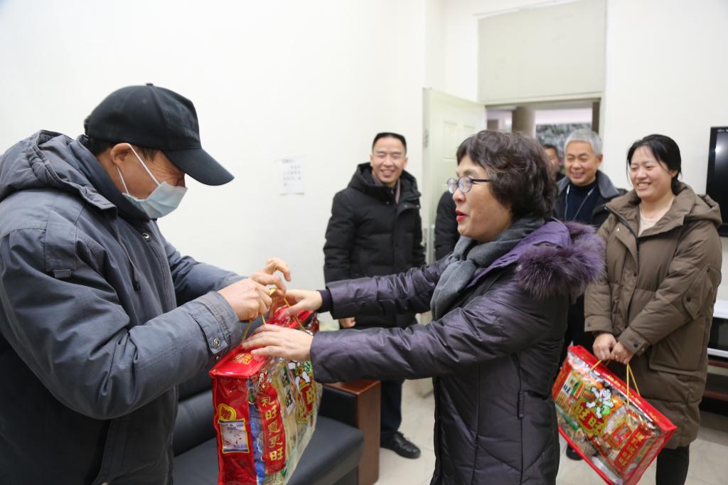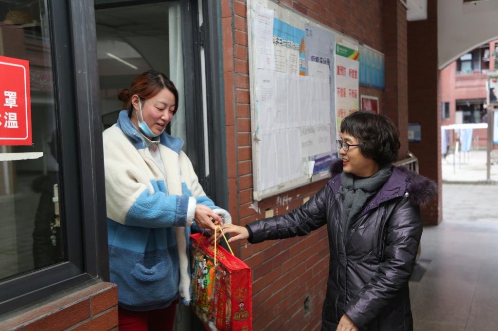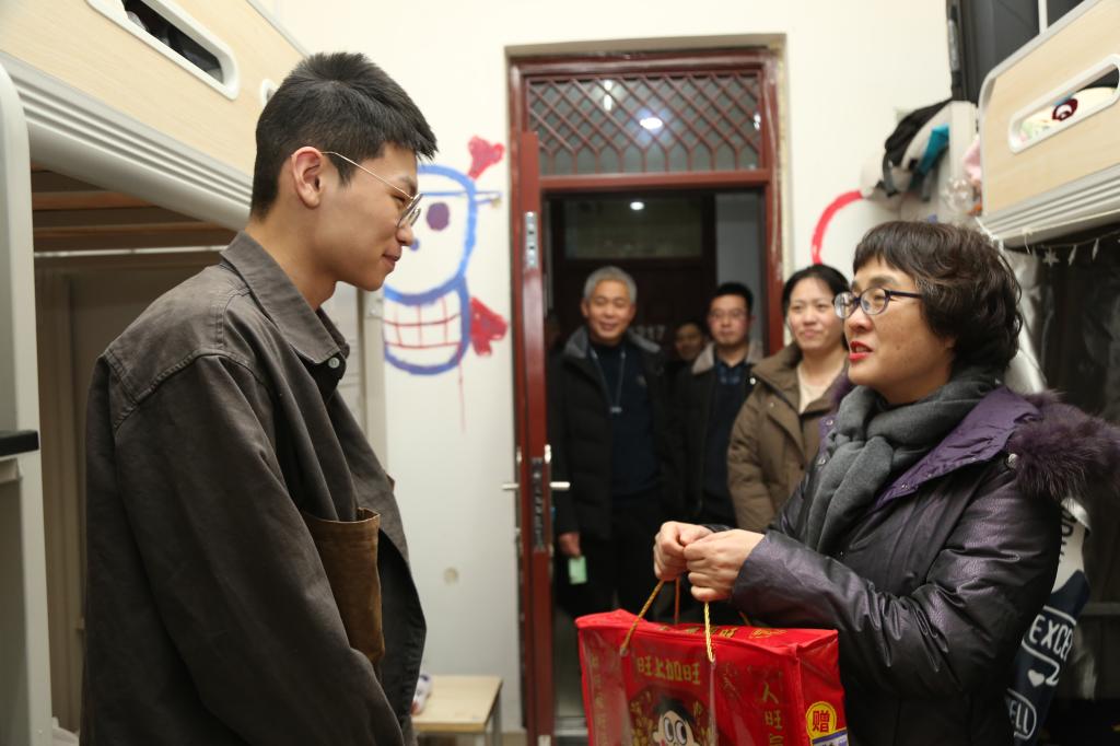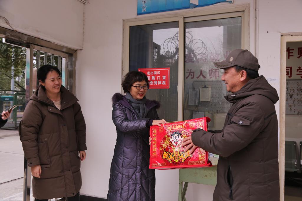 周红代表学校党政和工会向寒假期间仍坚守在工作岗位的保障处安保人员、后勤维保人员及值班干部、学创处公寓管理员、总值班干部和留校学生送上大礼包,仔细询问同学们不能回家过年的原因,希望他们在校期间工作生活愉快,并祝福他们身体健康、心情愉悦。她叮嘱留校同学要注意安全、坚持锻炼身体,有任何困难一定要找学校;要求学生处和公寓管理员要关心留校同学的生活,确保寒假在校师生过一个安全祥和的新春佳节。