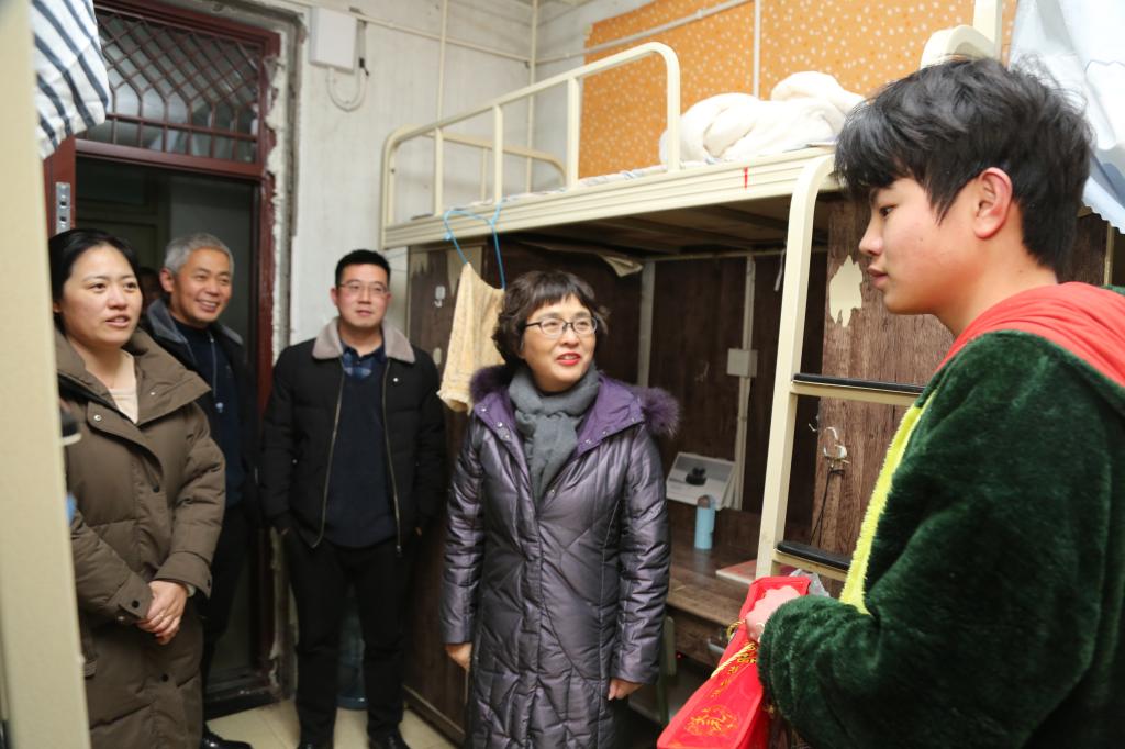1月28日,党委副书记、工会主席周红来到学校南北苑门卫室、学生公寓、总值班室和动力科值班室等地,看望慰问寒假期间留校值班教职工和留校学生。学生管理与就业创业工作处处长朱瑶、副处长何春荣,安全与后勤保障处副处长幸永盛等参加慰问。