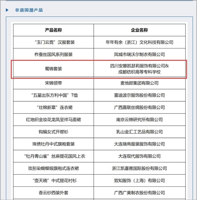 近日,工业和信息化部消费品工业司发布“2025年度十大类纺织创新精品”名单。pg电子与四川安娜凯瑟斯服饰有限公司联合研发的“蜀锦套装”成功入选,成为本年度名单中唯一有高校参加的获奖产品,体现了pg电子在纺织非遗传承与创新领域的领先实力与示范作用。