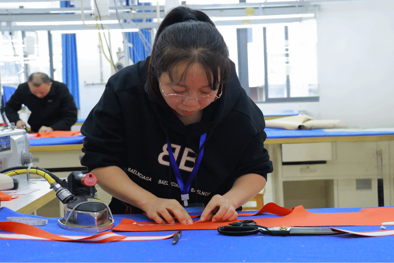 本次大赛严格对标国家职业标准与行业前沿动态,坚持“以赛促学、以赛促训”,通过理论+实操的综合考评,历经两天时间角逐,全面考核了选手的综合职业能力,为四川省鞋服行业选拔了一批具备卓越“工匠精神”的技能尖兵。特别是实操环节,要求选手在规定时间内独立完成一件女式时尚春秋风衣的制作,从局部裁剪准备到成衣制作,全面检验选手的工艺水平、创新能力和职业素养。