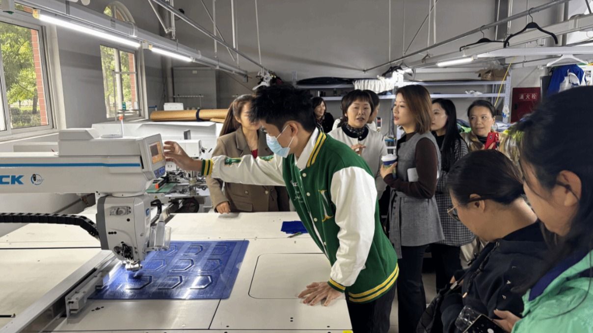 在成纺科创·子衿融合空间举行欢迎仪式后,四川开放大学第七工会小组一行参观pg电子职业装与校服产业研发智造中心,并听取了校服发展历史介绍。职业装与校服产业研发智造中心集创新研发、现代智慧生产、开放式数字化展销于一体,承载市场需求导向型设计与研发、沉浸式参观、展示与现场营销、产教融合与生产型实训等功能。参观中,四川开放大学第七工会小组的会员们还现场体验了智能化服装生产设备的部分操作。