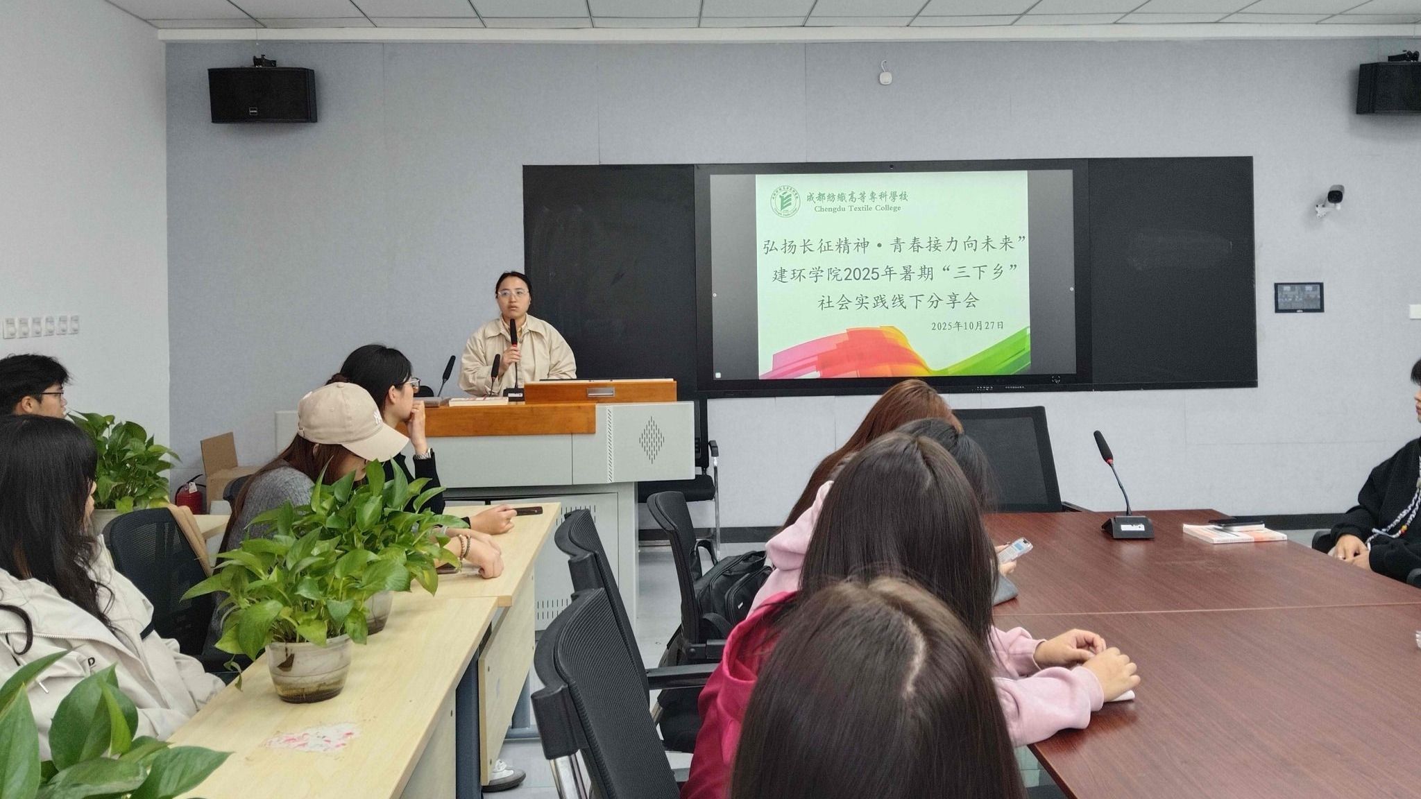 10月27日,建环学院团总支在行知楼A306举办以“弘扬长征精神·青春接力向未来”为主题的暑期“三下乡”社会实践线下分享会。社会实践团队指导老师季俊玲、团队成员,以及建环学院2024、2025级各班学生代表参会。