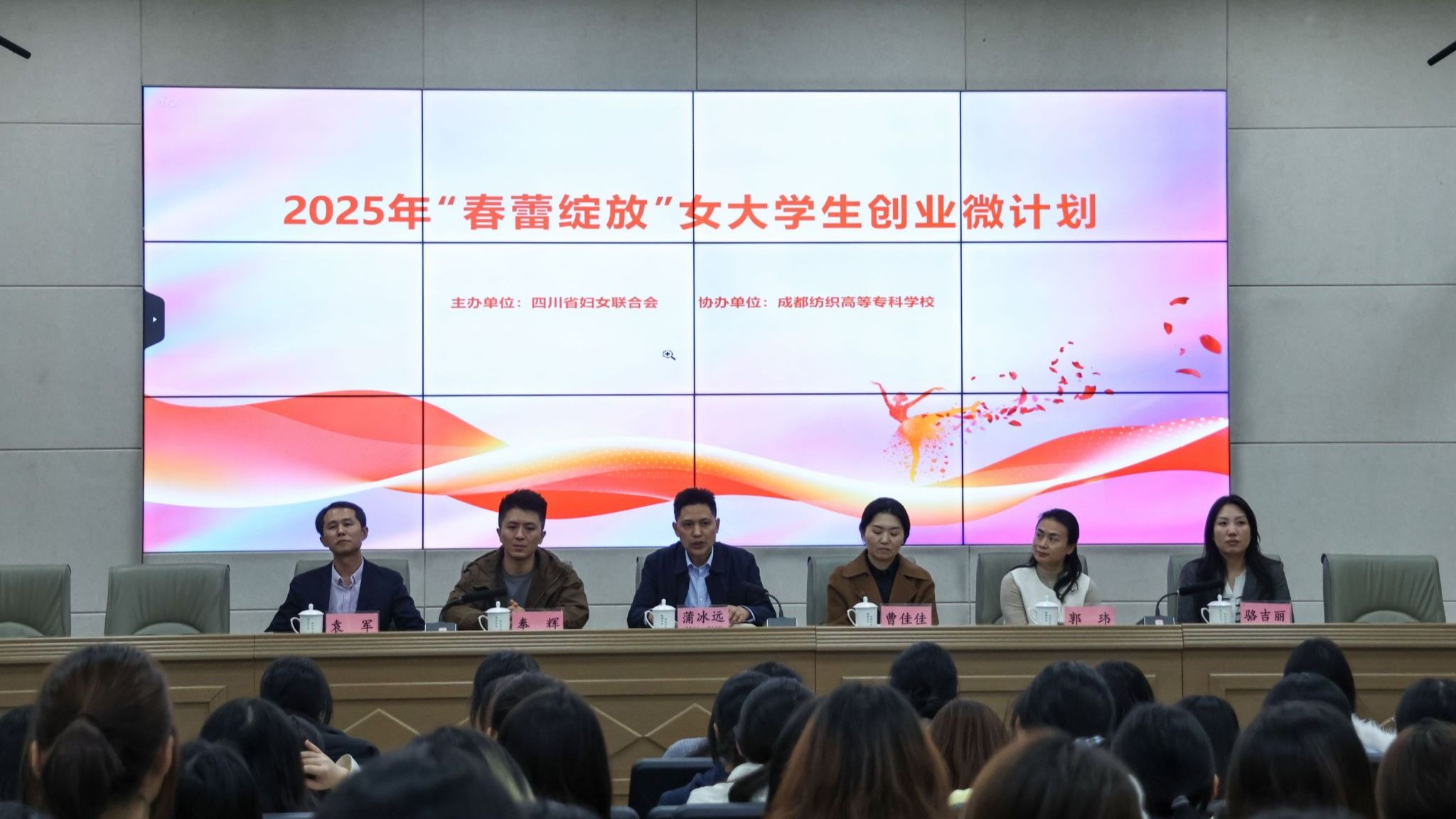 10月28日,由四川省妇联主办的2025年“春蕾绽放”女大学生创业微计划进校园宣讲活动首站在pg电子举行。党委常委、副校长蒲冰远致辞,四川省妇联发展部副部长曹佳佳出席宣讲会,pg电子近200名女大学生参加活动。宣讲会由校工会专职副主席王歆主持。
