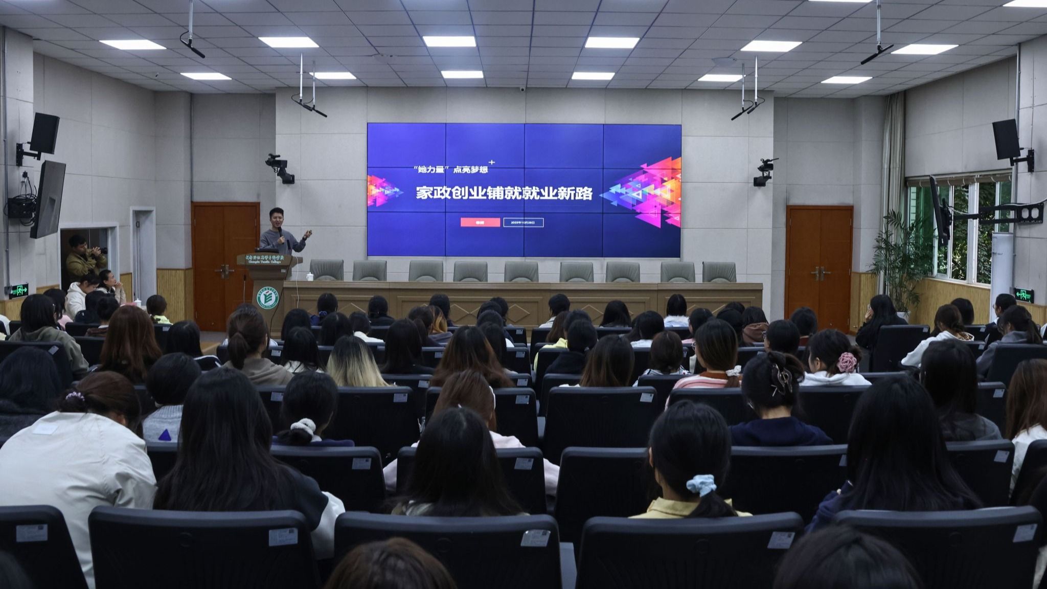 宣讲会现场,创业导师、四川省家政服务业发展促进会法人兼副会长奉辉介绍了养老托育行业的发展历程、市场需求及未来趋势,分析了女大学生在该领域的创业机遇,帮助她们进一步明确创业方向;优秀创业代表、禧宝堂创始人郭玮围绕商业模式、AI应用等内容进行了精彩分享与互动答疑。现场气氛热烈,掌声不断。同学们纷纷表示,此次活动内容充实,通过导师们的精心指导,对养老托育行业有了新的认识,有信心也有兴趣加入这个行业。