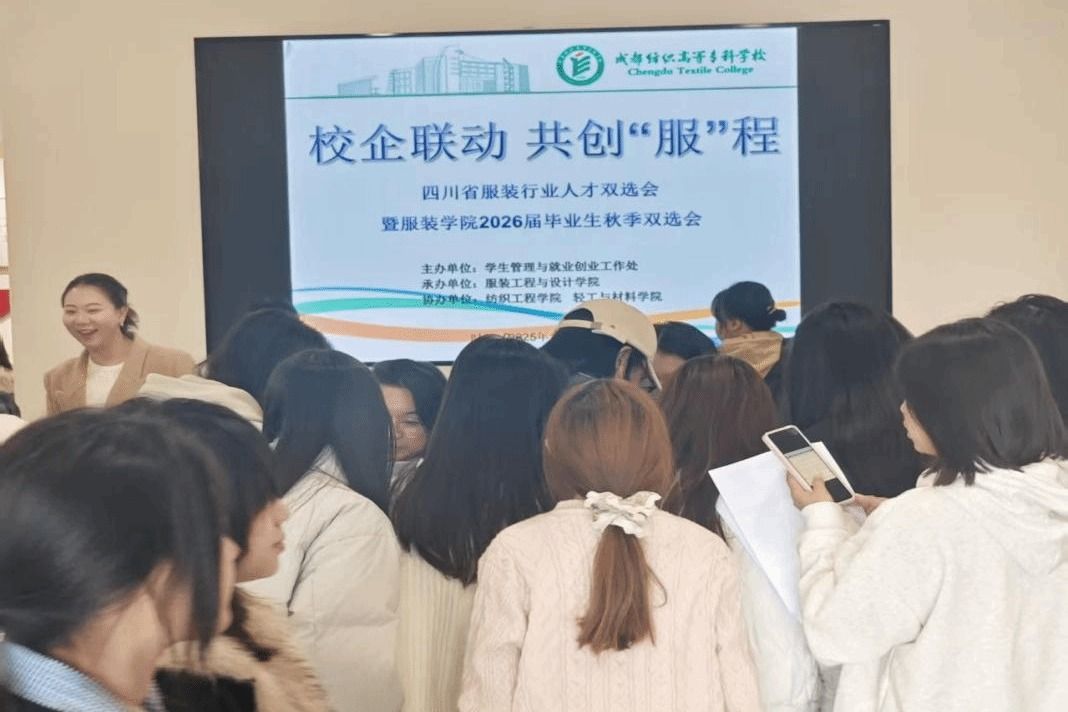 10月30日,服装学院在四川省服装服饰协会的协同支持下,联合纺织工程学院、轻工与材料学院在学校南苑致知楼“一站式”就业育人基地举办2026届毕业生秋季专场双选会,聚焦食品轻纺产业尤其是服装行业人才需求,汇聚14家四川省属地优质服装企业,带来130余个优质岗位,为毕业生与企业搭建起高效沟通的“双向奔赴”桥梁。