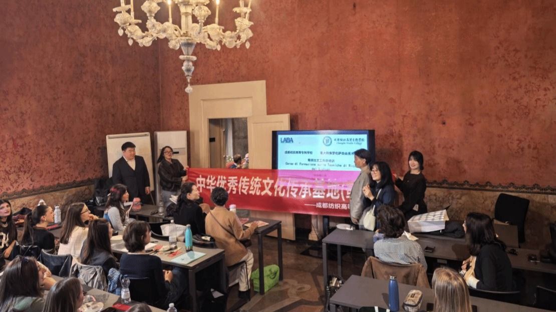 11月初,由副校长刘莉带队,服装学院蜀绣研究中心主任朱利容教授、党总支书记太扎姆、中意合作班专业负责人黄晶晶一行赴意大利佛罗伦萨,就国际化合作办学、共建海外非遗工作坊及访问纺织服装企业等事宜开展工作。