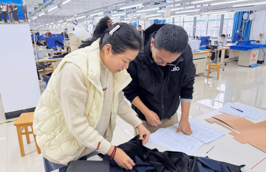 培训继续沿用首期已成熟的课程体系,以典型服装品类的裁剪、缝制、整烫作为核心技能模块,深入剖析裤装流水线编排以及人机工位布局设计等关键技术要点。在“项目化教学”模式引领下,参训人员借助“夹克衫衣身缝制”“里料工艺处理”“装袖装领拉链整烫”等一系列实训模块,系统地掌握了服装生产的完整工艺流程。