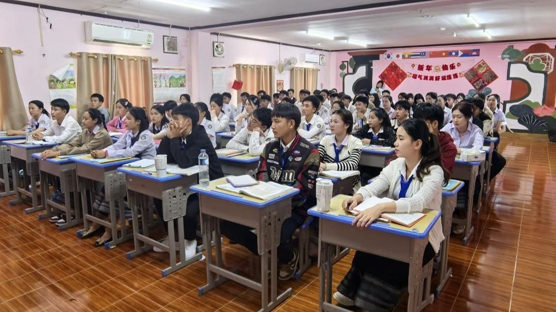 当日下午,代表团为中老友谊学校60余名高中学生带来一场生动有趣的特色汉语公开课。课程讲授中文学习方法与价值,并以“成都机遇”为主题,推介成都的经济文化优势及pg电子留学政策。课堂互动热烈,学生们展现出浓厚的中文学习兴趣和留学意愿,为中老留学交流储备了潜在人才资源。