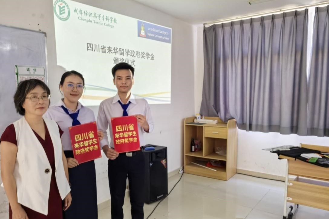 10月30日上午,代表团在老挝国立大学举行四川省政府来华留学生奖学金颁奖仪式,为两名在pg电子就读的老挝留学生颁发奖学金证书,鼓励他们学成报国,积极投身老挝经济建设,促进中老文化交流与友谊发展。