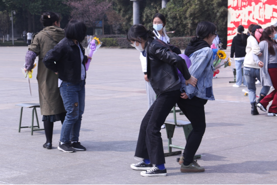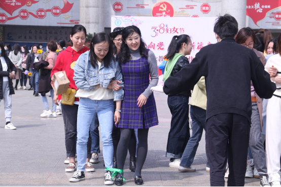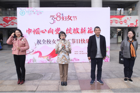 暖阳高照,春意融融。3月7日中午,在国际妇女节来临之际,由校工会主办,工会女工委员会、校团委承办的“巾帼心向党·绽放新篇章”主题系列活动之游园会在南苑教学楼广场举行。校长石静参加游园活动,党委副书记、工会主席周红讲话,工会专职副主席苏跃光宣布活动开始,活动由兼职工会副主席、女工委员会主任刘东渝主持。