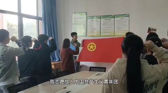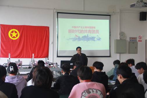 李敏带领同学们重温入团誓词,“我志愿加入中国共产主义青年团,坚决拥护中国共产党的领导……” 同学们铿锵有力的声音,传递出身为共青团干部的自豪感,展示了青年学子奉献国家的坚定理想和追求。李敏讲道:时光不老,青春正好。跨越世纪风云,踏上百年征程。新时代的青年,青春正当时,奋斗正当时,应不忘初心、继续前进,唱响新时代的青春之歌,努力成长为堪当民族复兴重任的时代新人。