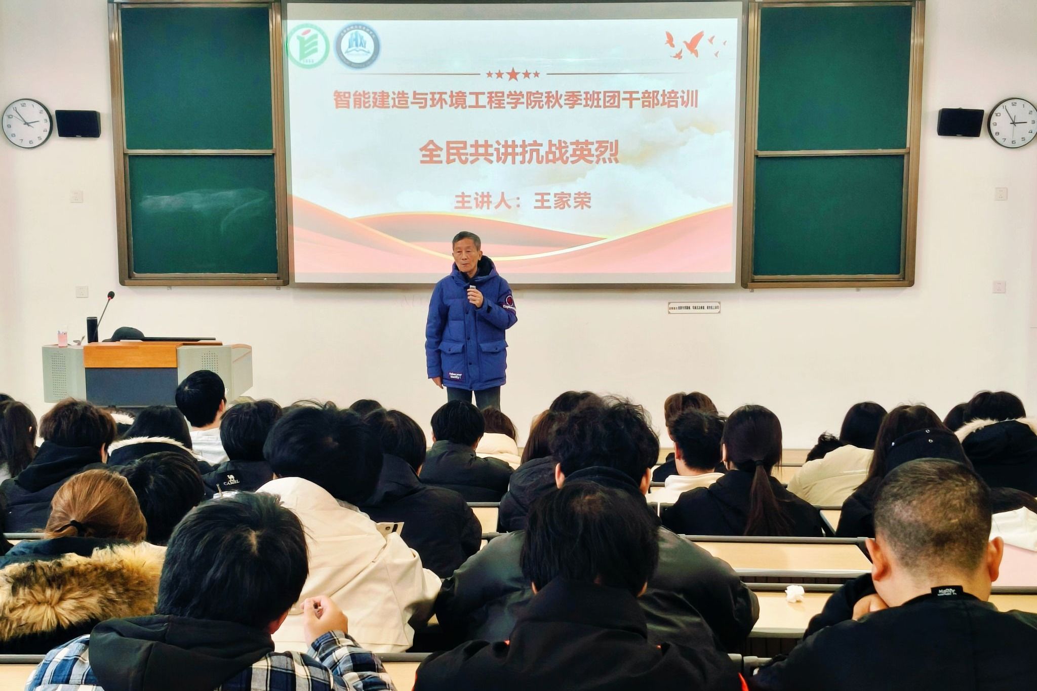 11月18日,建环学院团总支在邛崃产教园区知著楼D102教室举行2025年秋季班团干部培训。“中国好人”、邛崃市南街小学退休教师,邛崃市老促会红色文化宣讲员,成都市关工委“五老”宣讲团成员王家荣以“全民共讲抗战英烈”为主题,为全院班团干部作了一场生动的红色文化宣讲。