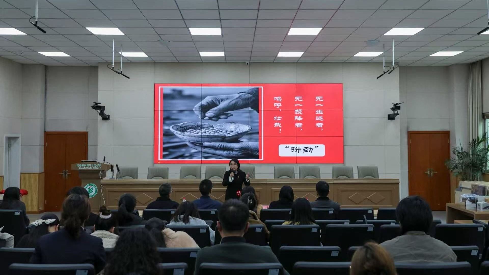 11月18日,由校工会、校团委和党委宣传统战部联合主办的“铭记历史•展望未来”2025年青年教师主题演讲比赛在学校明德楼二楼阶梯会议室举行。