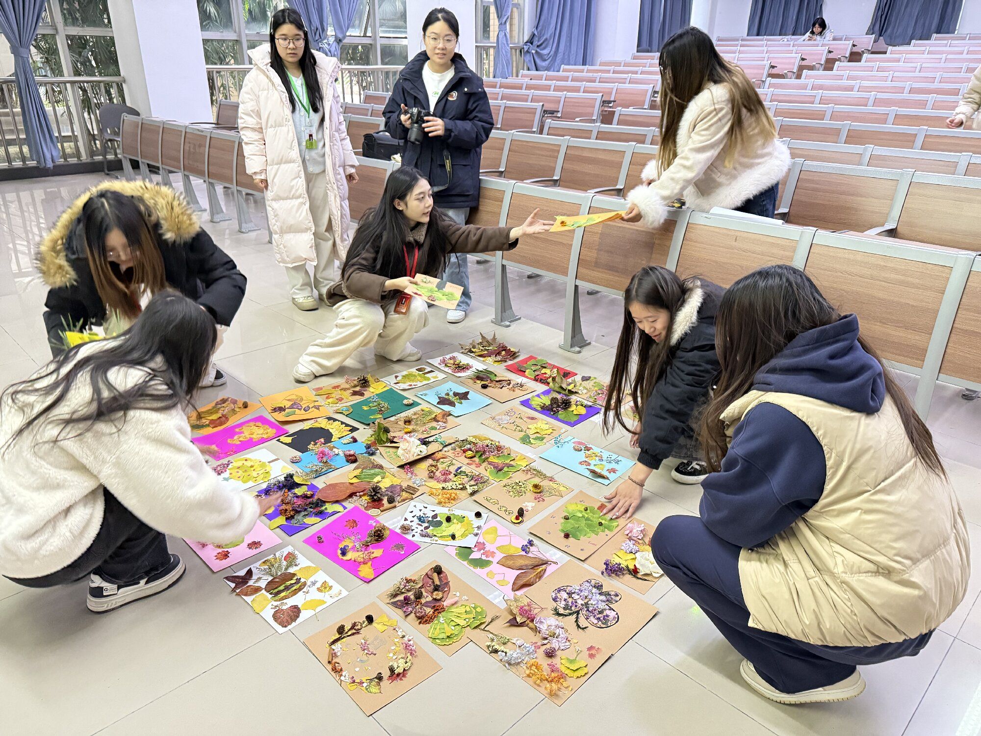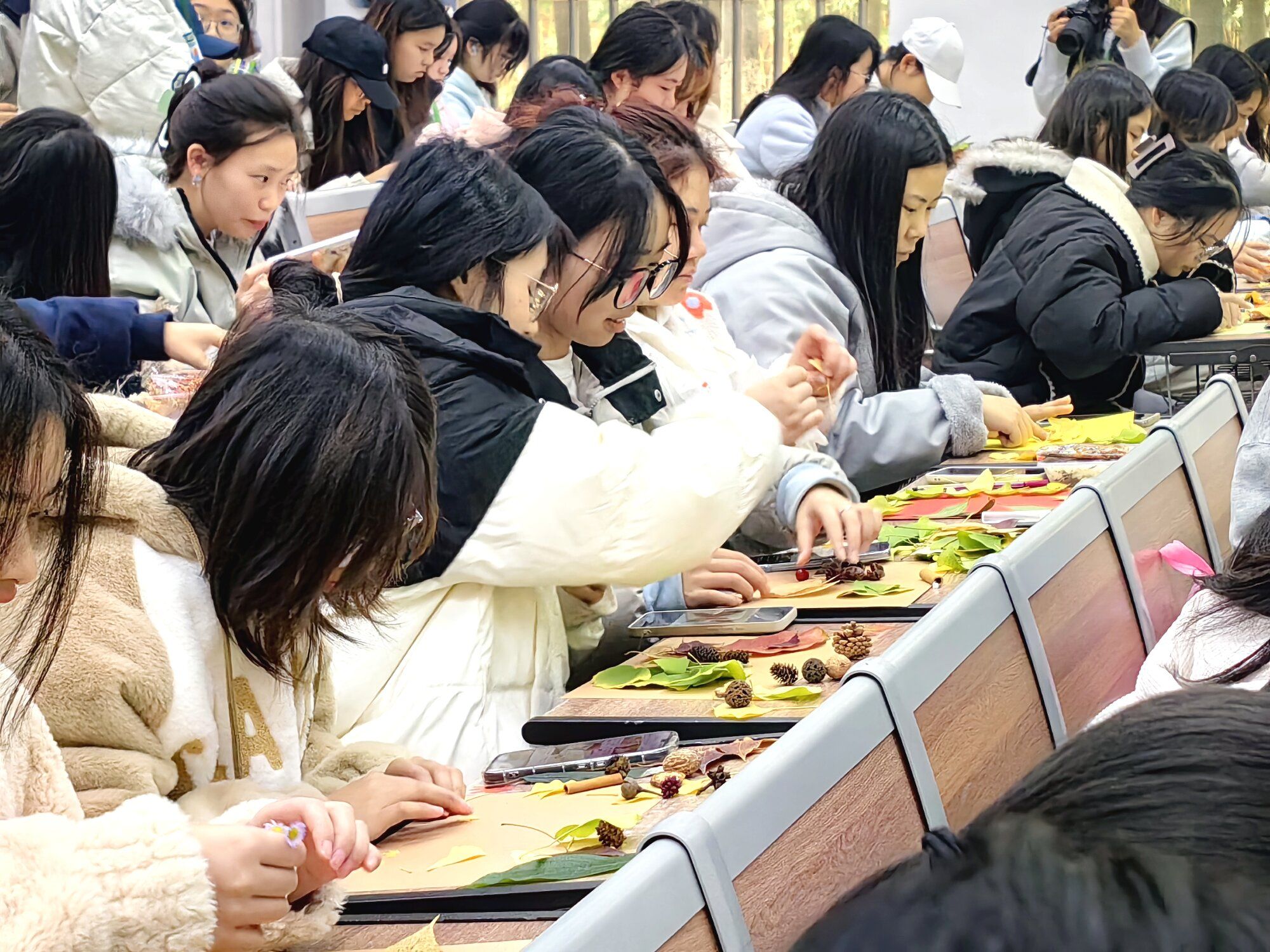 活动临近尾声,何舒婷鼓励同学们:“当前正值银杏叶如诗般飘飞的季节,大家不妨邀上三五好友,于校内就地取材,一同开展植物贴画活动,让心灵在这惬意时节放个秋假。”
