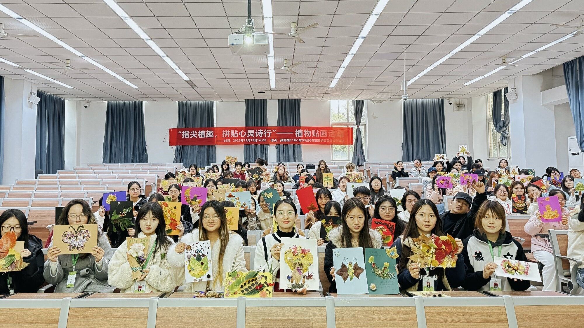11月18日下午,数字经贸与管理学院团支部学生会心理部在南苑致知楼C102举办“指尖植趣,拼贴心灵诗行——植物贴画”活动。活动以自然为媒介,以创意为桥梁,为校园注入鲜活的文化气息,成为校园文化建设中一道亮丽的风景线。数管学院心理部指导老师何舒婷,学生会心理部、宣传部成员和大一大二年级的130名学生参加活动。