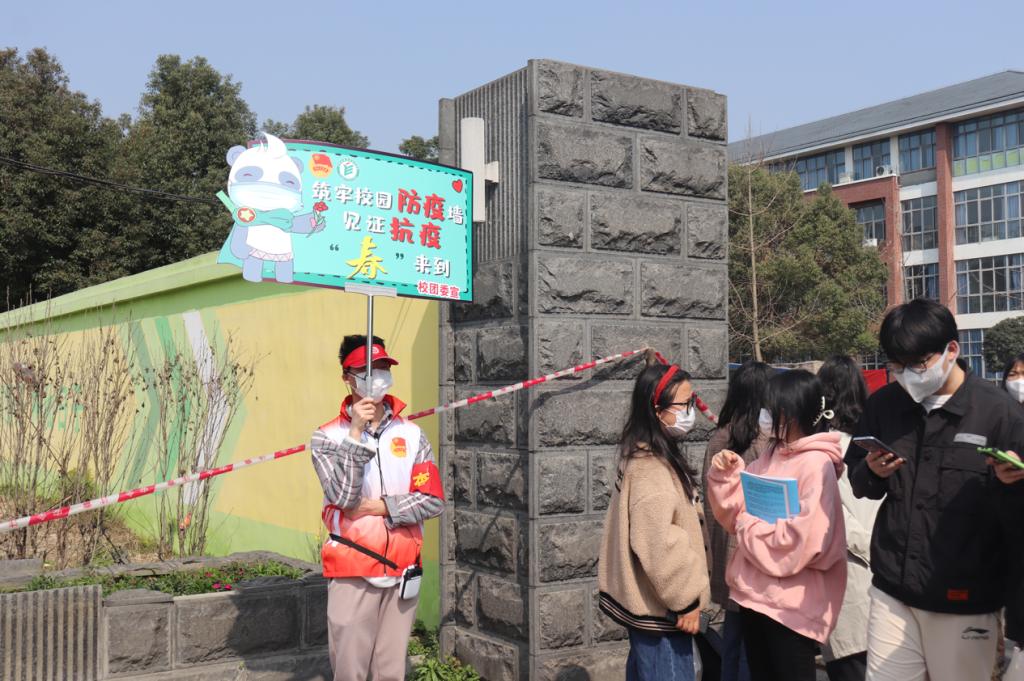志愿者在南北苑通道秩序维护