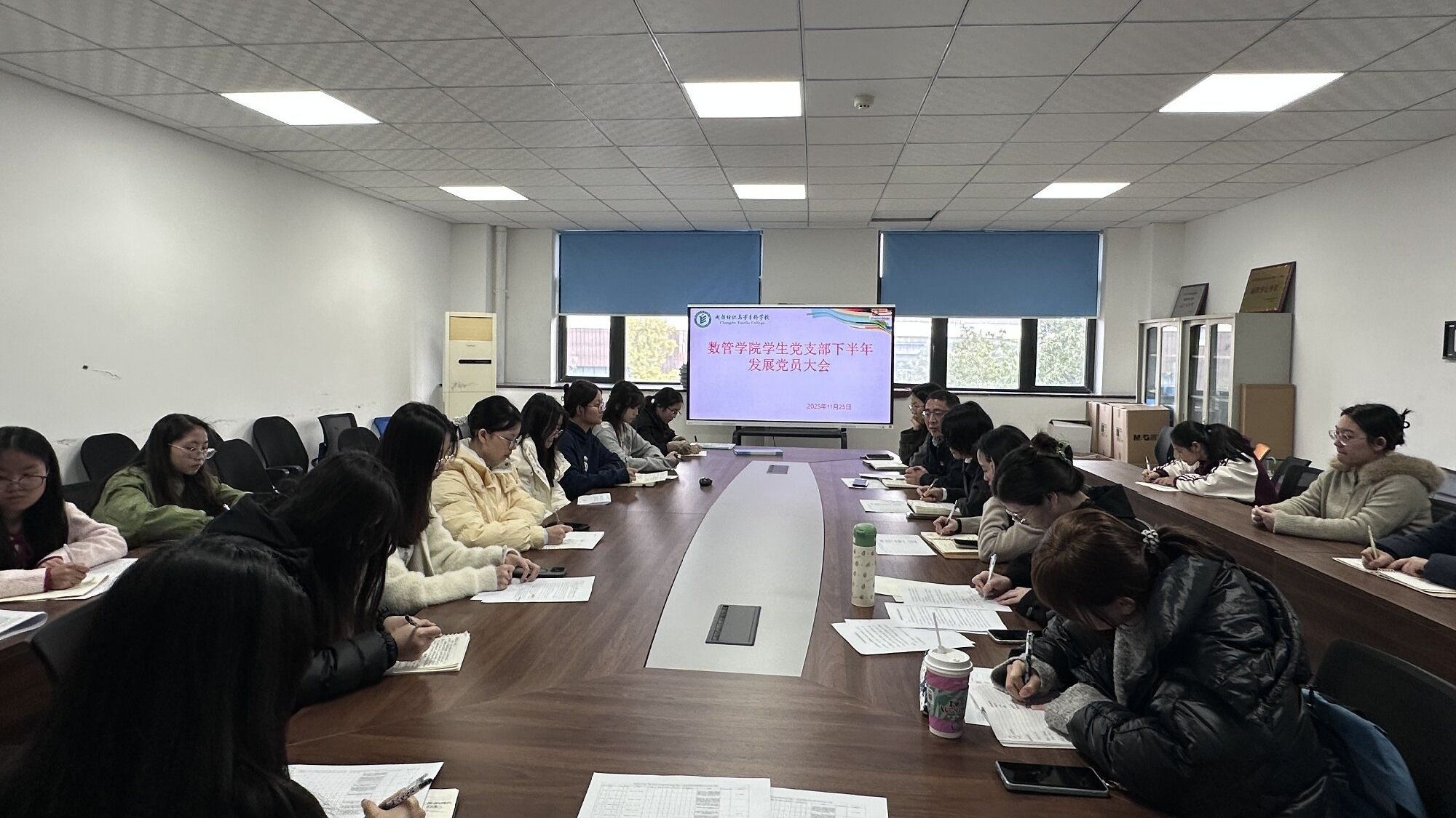 11月25日,数管学院学生党支部在融创楼A408、A402会议室召开预备党员发展大会。学院党总支书记王霖、党总支副书记兼团总支书记何酉宁,入党介绍人及支部全体党员参会,会议分别由学院党总支专职组织员兼学生第二党支部书记何敏、学生第一党支部书记贾虹宇主持。