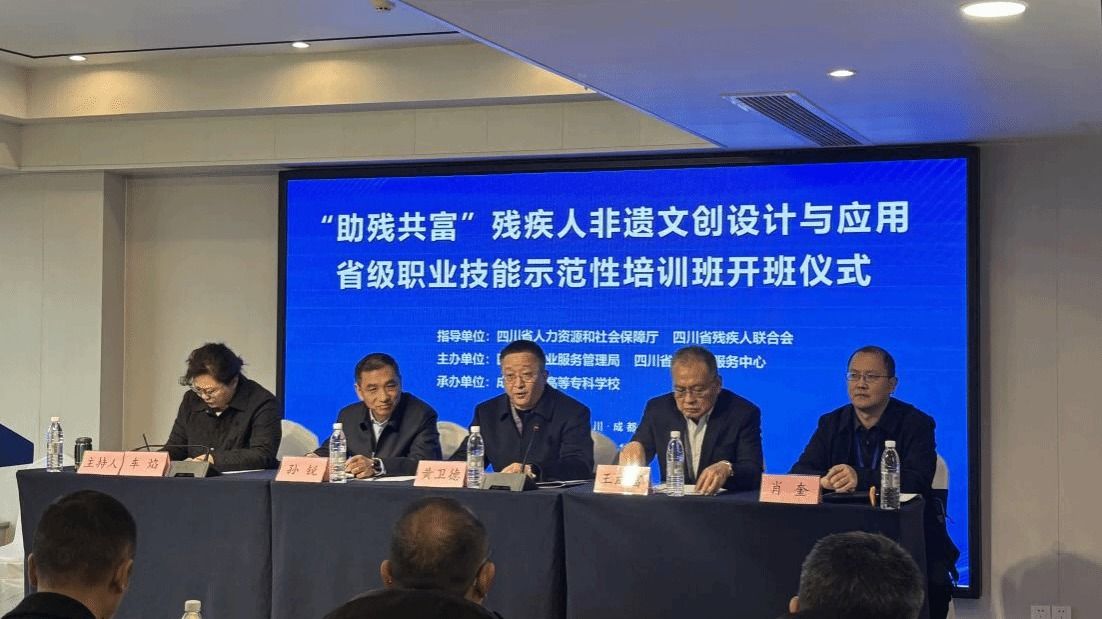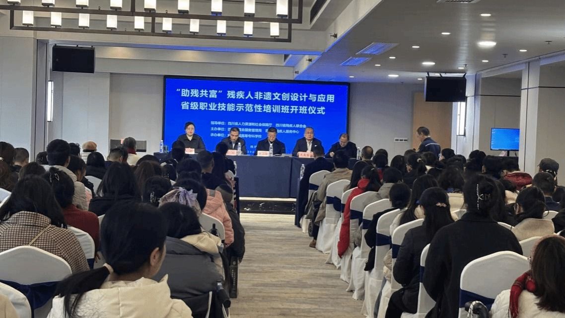 12月4日上午,由四川省残疾人联合会、四川省人力资源和社会保障厅联合主办的“助残共富”残疾人非遗文创设计与应用省级职业技能示范性培训开班仪式在pg电子举行。省残联党组成员、副理事长黄卫德,pg电子党委副书记、校长孙锐出席并讲话,人力资源社会保障厅二级巡视员王成富宣布开班。