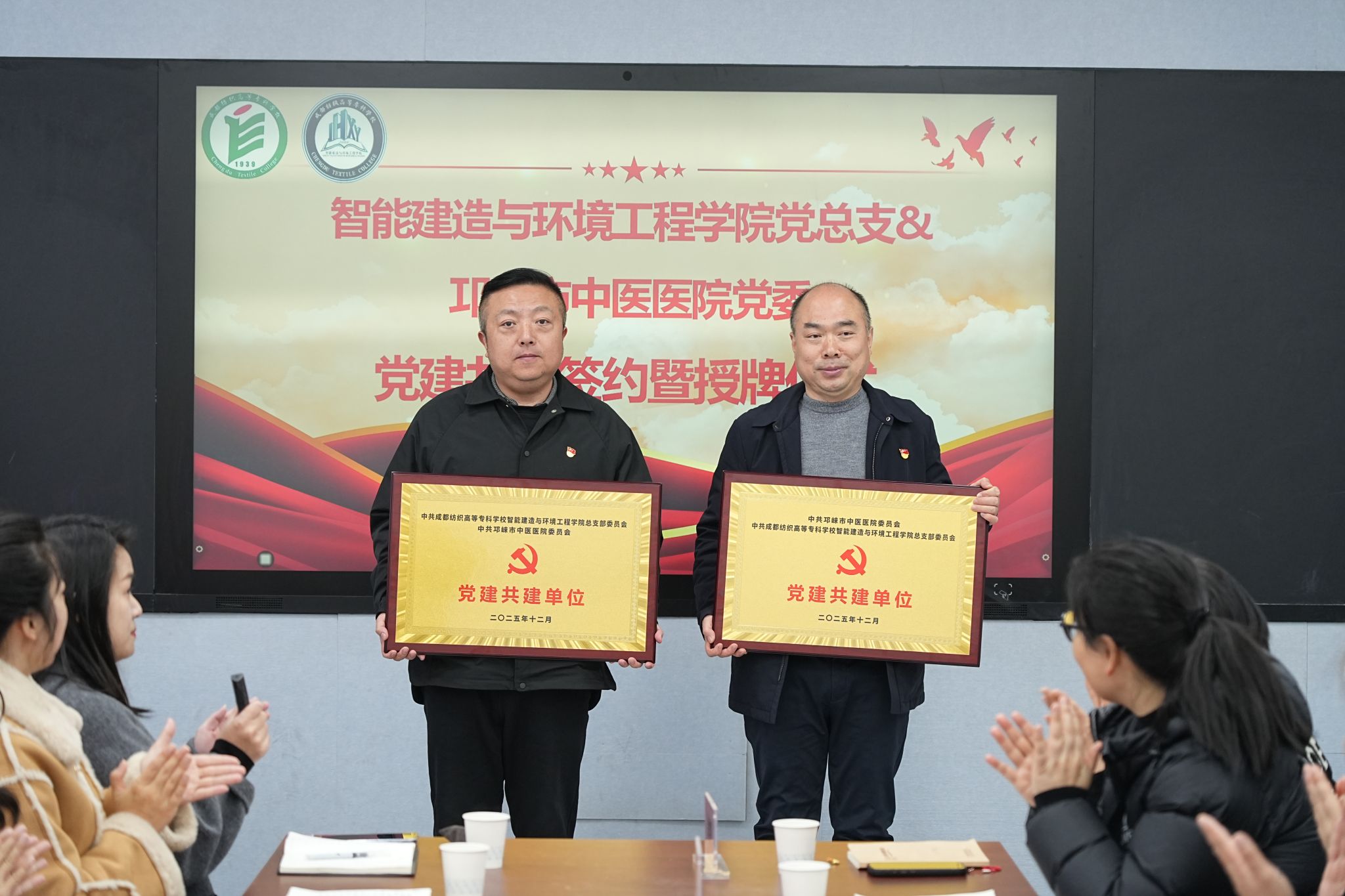 12月4日上午,建环学院与邛崃市中医医院党建共建签约暨授牌仪式在行知楼A306会议室举行。pg电子建环学院院长秦朝昭、党总支书记鲜金宏,马克思主义学院教师刘琪,邛崃市中医医院党委书记陈忠、党委副书记刘妍婷等双方领导班子成员、党支部书记代表与学生党员代表出席仪式。