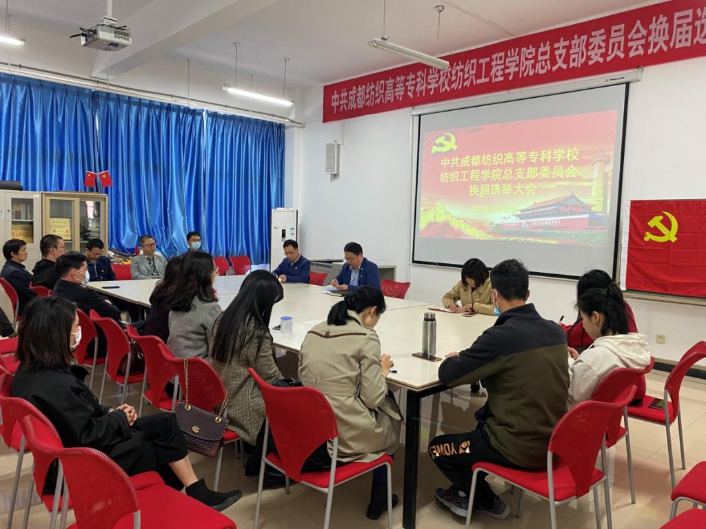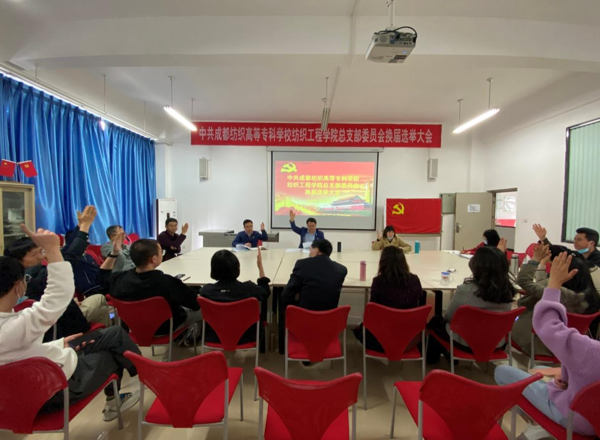 3月22日,根据学校党委《关于做好机关党委、各党总支(直属党支部)换届选举工作的通知》(纺专党﹝2022﹞14号)有关工作安排,纺织工程学院党总支在北苑实训楼D204召开换届选举大会。徐翔同志代表上一届党总支部委员会作工作报告;大会表决通过《纺织工程学院党总支委员会换届选举办法》,选举徐翔、罗娅、刘沂、陈绍芳、原海波五名同志为新一届党总支委员会委员;学院全体正式党员参会,会议由徐翔主持。