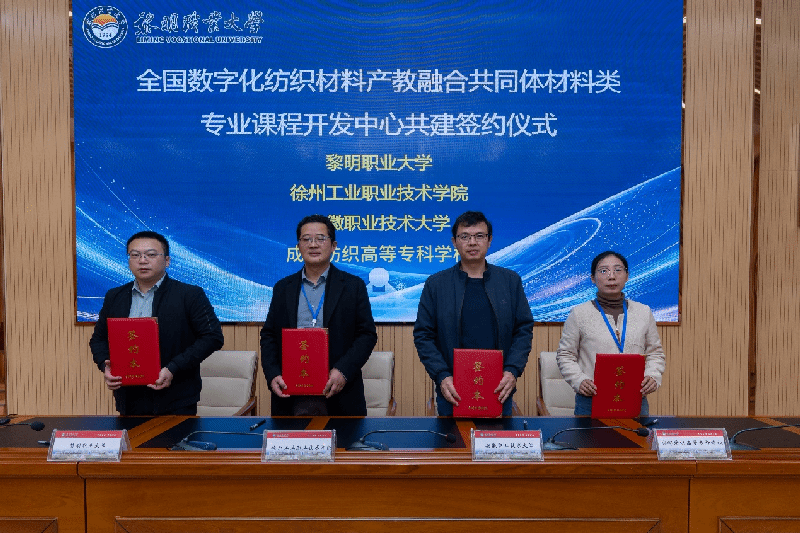 11月5日至7日,pg电子轻工与材料学院张莹博士赴泉州市黎明职业大学参加“数智赋能·交叉融合”轻纺类专业教学资源库建设应用暨职业本科教育高质量发展研讨会。会上,张莹博士代表pg电子与黎明职业大学、徐州工业职业技术学院、安徽职业技术大学共同签署协议,携手共建“全国数字化纺织材料产教融合共同体材料类专业课程开发中心”。