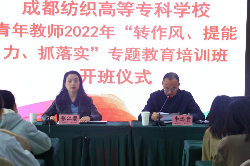 开班仪式上,张江婴书记强调,青年教师是成纺的未来,青年教师深入开展“转作风、提能力、抓落实”专题教育非常必要,这既是学校事业发展的需要,也是个人成长的需要,希望青年教师树立“我的工作我负责,协调的工作我尽责,配合的工作我有责”的责任意识,切实做好自身作风建设、师德师风建设,做到学思践悟,身正为范,锲而不舍,为学校早日建成职教本科贡献力量。人事处处长李远贵介绍培训班工作方案并作了学习纪律要求。