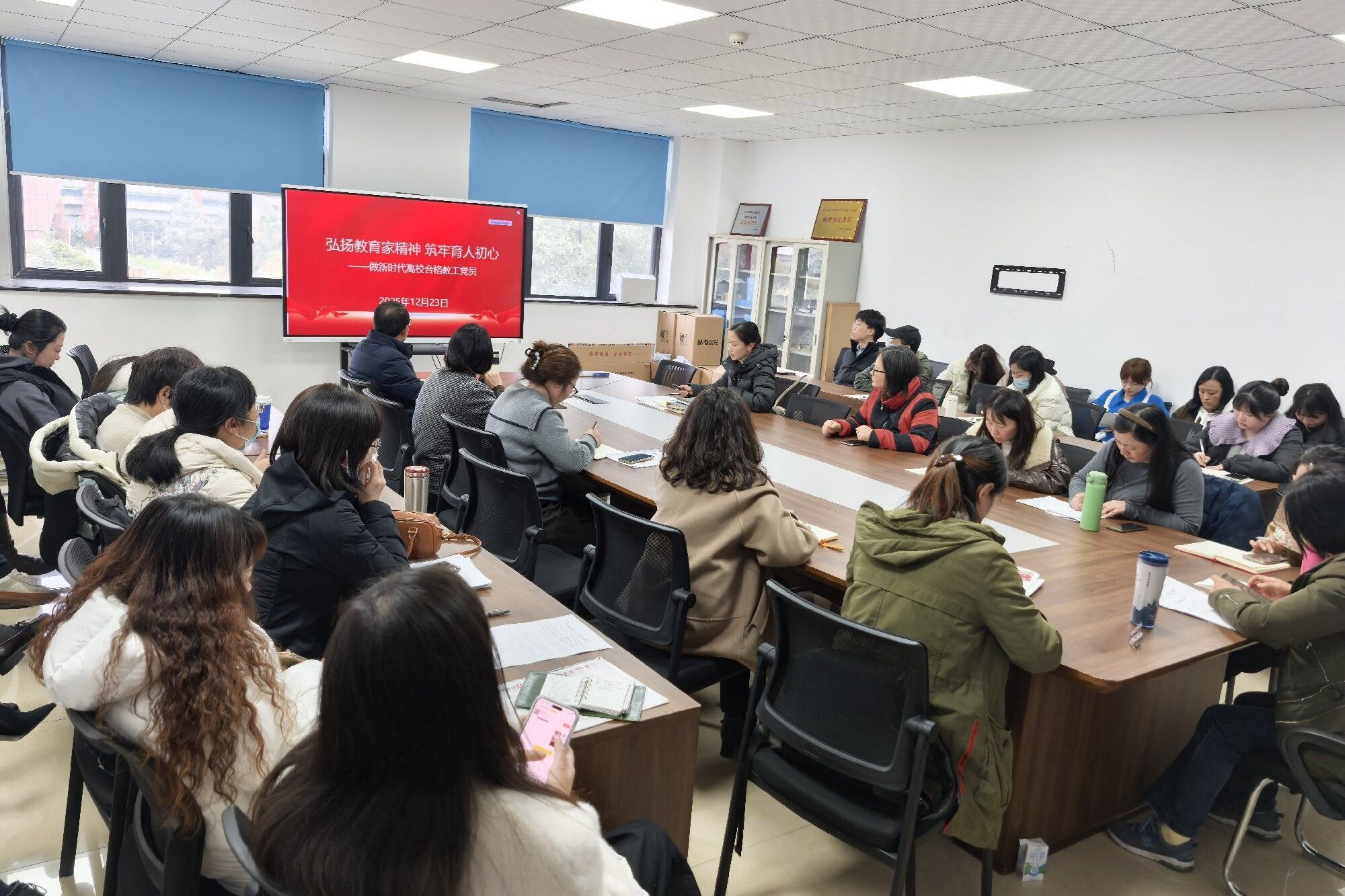 12月23日,数管学院教工党支部在融创楼A402开展专题党课,党支部书记陈雨生以“弘扬教育家精神 筑牢育人初心——做新时代高校合格教工党员”为题授课,全体党员教师齐聚学习、共话担当。