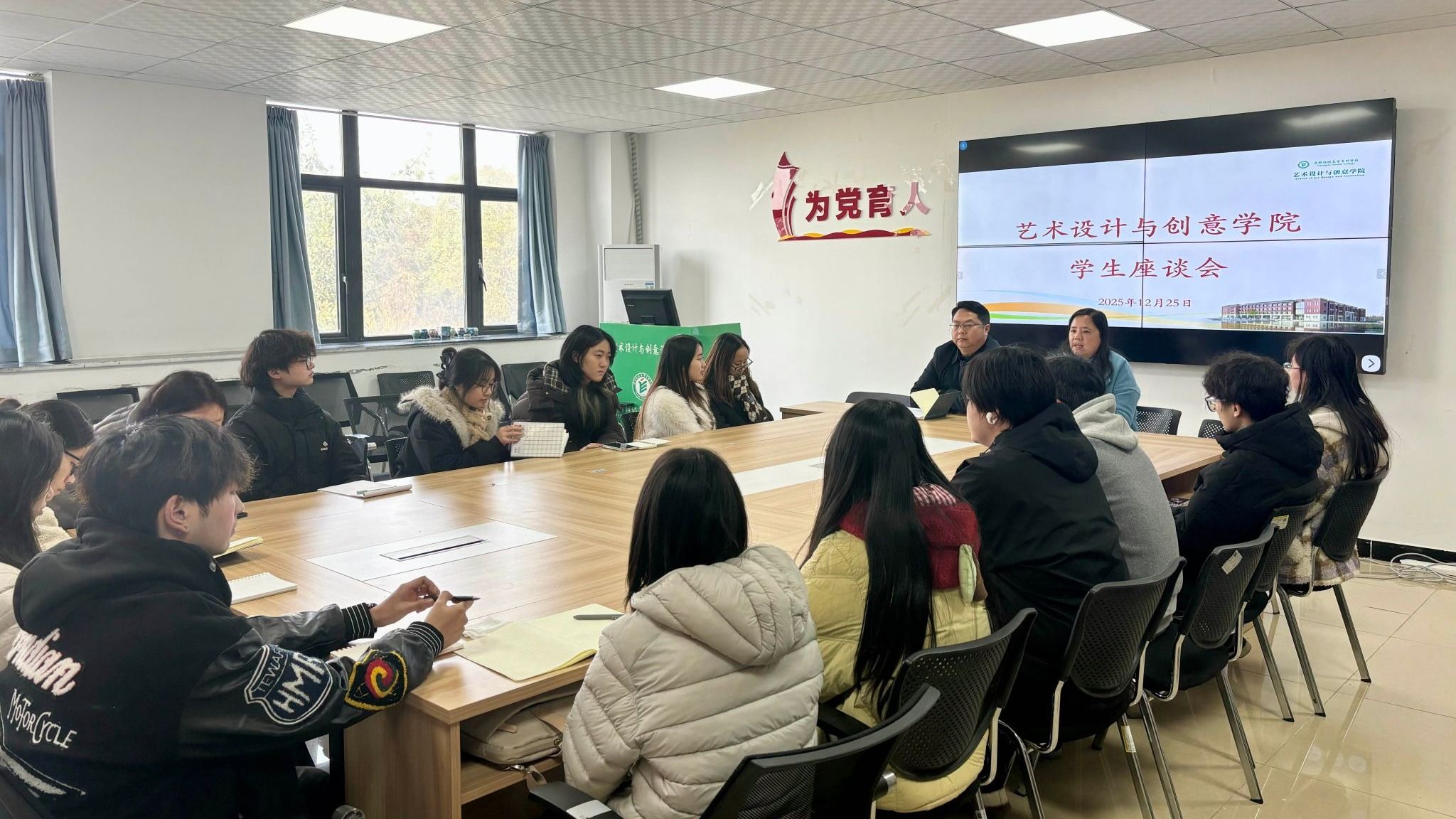 12月25日,艺术设计与创意学院在融创楼B205组织召开学生座谈会,学院党总支书记徐翔、党总支副书记兼团总支书记钟代琴、辅导员王晓俊、各班级学生干部代表参会。会议旨在倾听学生心声,解决实际困难,凝聚共识,推动班团建设和学生服务工作高质量发展。