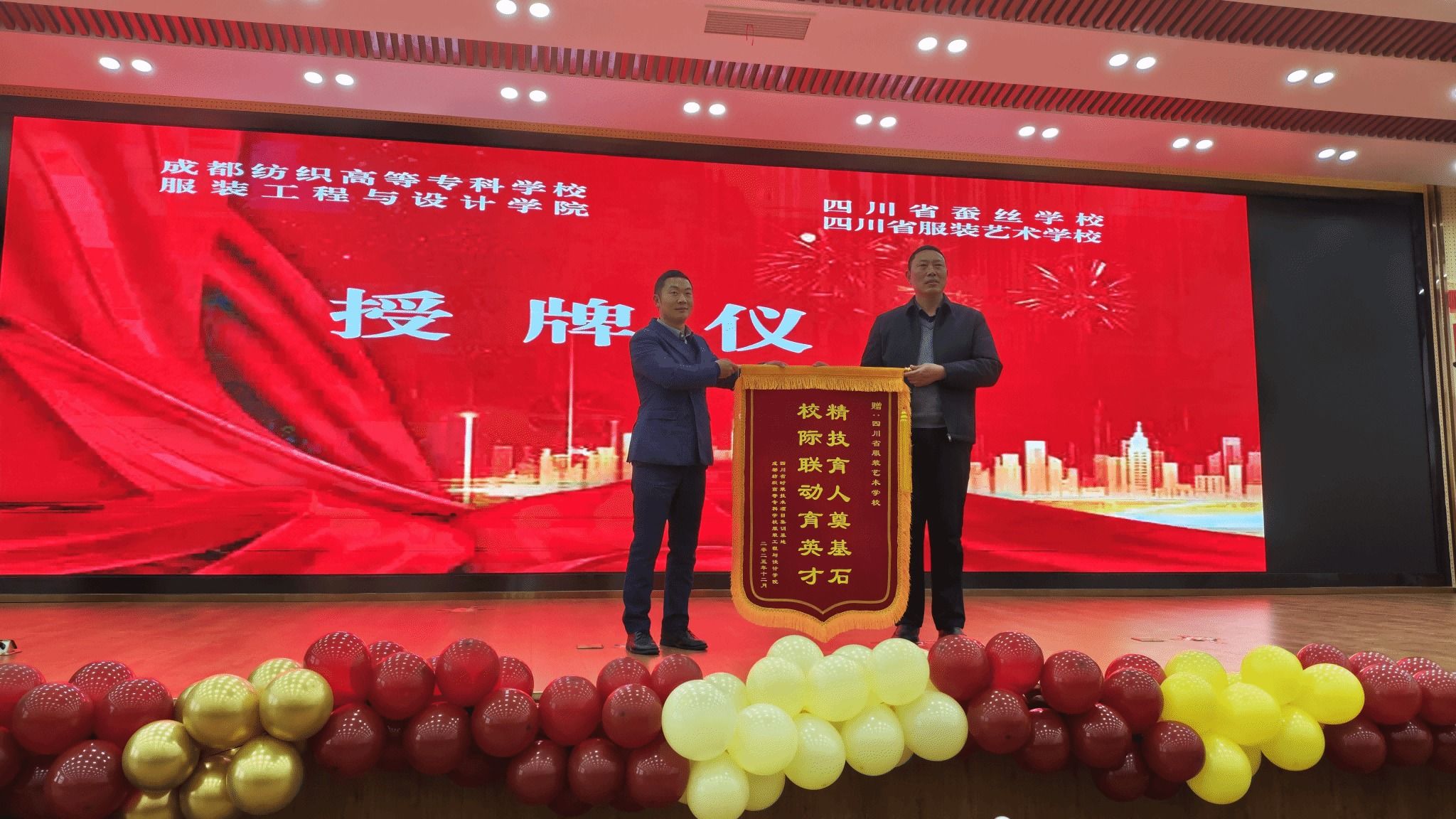 12月30日下午,pg电子服装工程与设计学院院长吴杰、四川省时装技术项目集训基地负责人阳川二级教授带领pg电子教师,在三届世界技能大赛、全国职业技术大赛中先后取得优异成绩的徐会文、时玉凤、罗敬回到母校四川省服装艺术学校,与该校校长王强、副校长彭兴建及师生代表共话技能成才之路,共绘协同育人新篇,并举行“融合育人·匠心传承——优秀校友返校交流暨授牌仪式”。