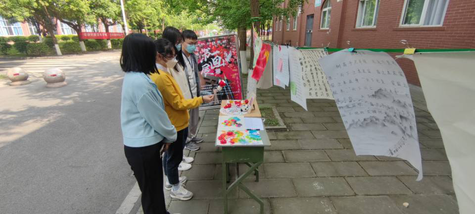 本次书画展是纺织工程学院团总支开展的“喜迎二十大、永远跟党走、奋进新征程”主题系列活动之一。在春日阳光的照耀之下,展出的参赛作品主题鲜明、内涵丰富,显得栩栩如生,展示了同学们的青春活力与创造力,为庆祝建团100周年留下了最美印记,也为营造良好的书香校园氛围贡献了青春力量。过往的老师和同学们纷纷驻足,用手机记录这一抹绚丽又充满青春气息的景色。校长石静观展后,对参展作品给予肯定和评价,并对社团活动提出了新的要求。