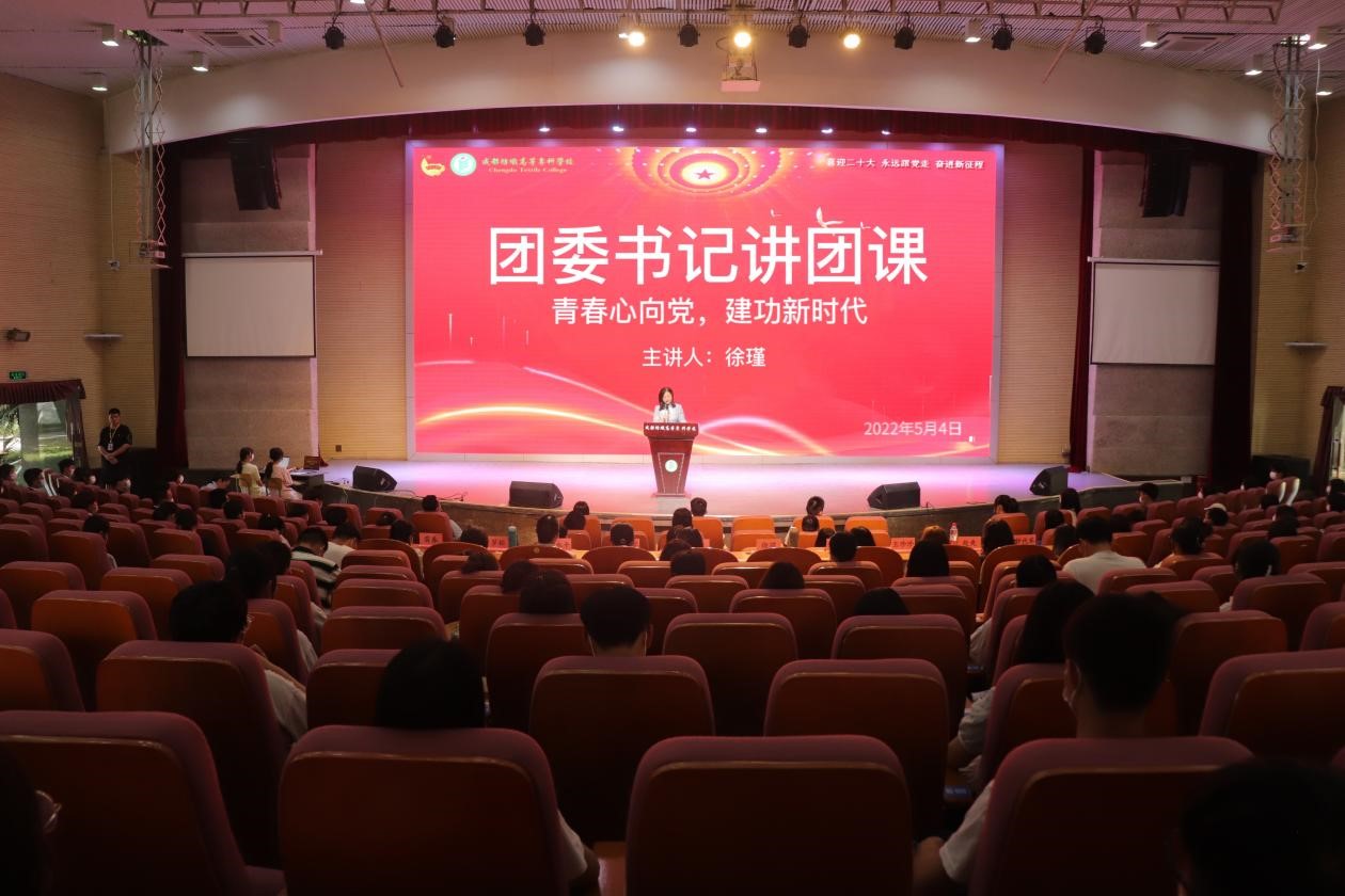 5月4日,校团委在南苑多功能厅举行主题教育,团委副书记徐瑾给全体团员上了一堂生动的团课。她带领全体团员集中学习了习近平总书记在中国人民大学考察时的重要讲话,让青年学子感受习近平总书记的殷切嘱托和期望;希望各位团员青年深刻领会习近平总书记重要讲话精神,牢记党旗所指就是团旗所向,坚定不移听党话、跟党走。
