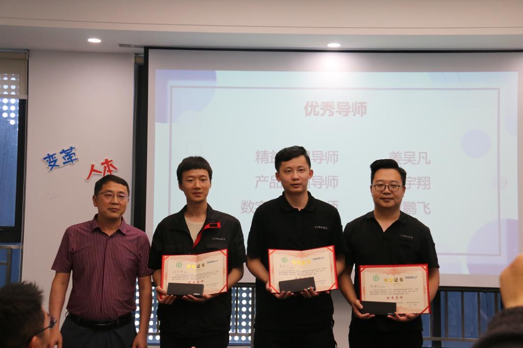 本次国培共产生了3位优秀历练教师、2位卓越历练教师、1位最佳历练教师和3位优秀企业导师、2位卓越企业导师、1位最佳企业导师,校企领导为获奖者颁发了证书和车模以资鼓励。此外,本次国培教师中,还首次产生了吉利集团实施“春雷计划”7期以来的两位高级讲师。