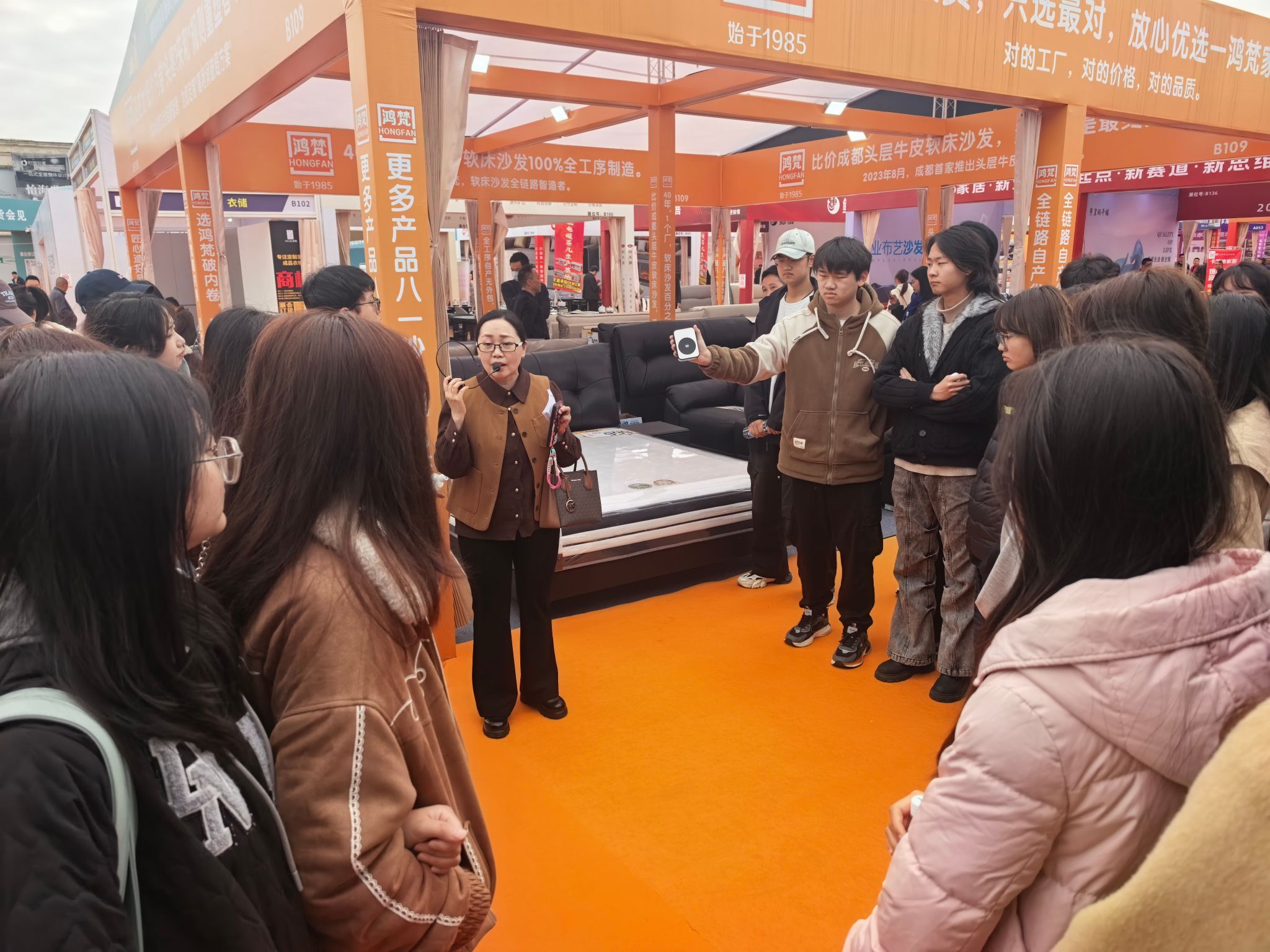展会创新打造的“线上+线下”双展模式,为室内设计的创新实践提供了新思路。线下展区以沉浸式场景展为核心,通过实景家居空间搭建、特色展位设计,直观呈现前沿家居生活方式,让同学们清晰看到设计方案如何落地为真实空间,深刻理解“设计既要好看,更要好用”的核心原则;线上搭建常态化电商家居云展,实现品牌与买家全年不间断对接,这种数字化、常态化的展示模式,让同学们认识到数字化技术对室内设计行业的深刻影响,拓宽了专业视野。