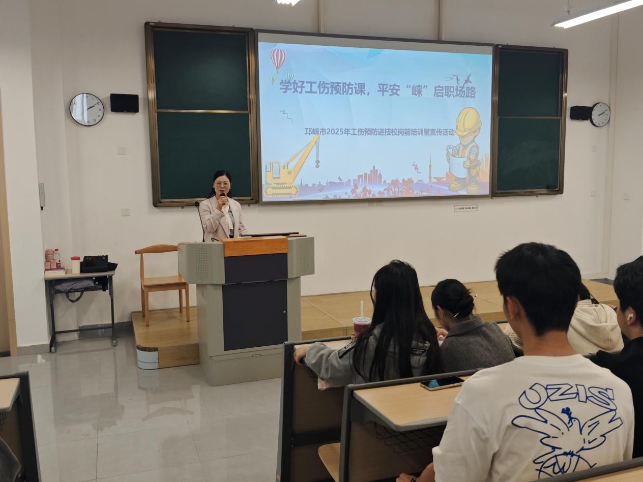 4月7日,由建环学院与邛崃市人力资源和社会保障局共同主办的“学好工伤预防课,平安‘崃’启职场路”工伤预防讲座在pg电子邛崃产教园区举行。