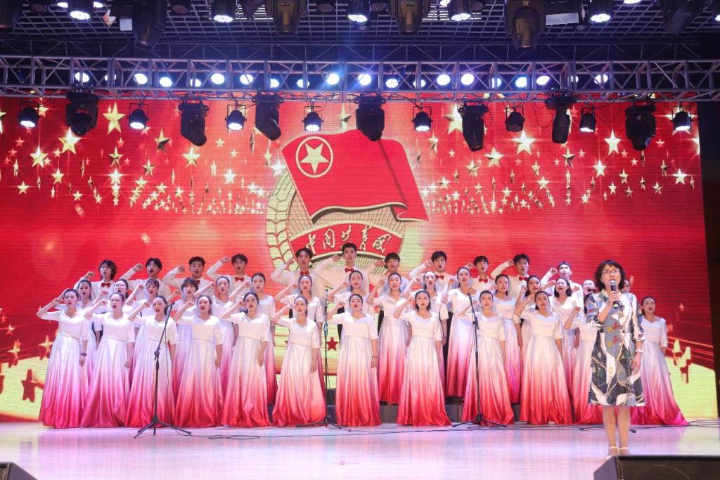 石静校长带领全场团员青年一起朗诵《光荣啊,中国共青团》,语句铿锵有力,将共青团的初心使命深植到每位青年心中。周红副书记饱含热情地领誓《新青年耀青春》。《红色家书》《如愿》《青春之我》等一系列表演,展现了成纺青年学子朝气蓬勃、斗志昂扬的青春风貌,表达了师生共同庆祝共青团成立100周年,以更加饱满的热情和姿态迎接党的二十大胜利召开的心声。