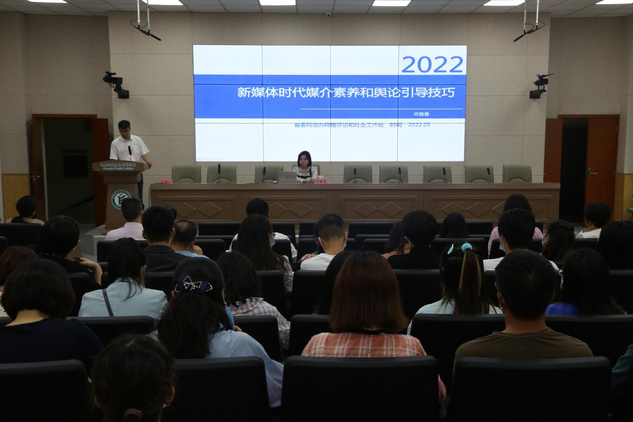 5月23日下午,应学校党委宣传统战部邀请,省委网信办网络评论和社会工作处干部许路曼来校,作《新媒体时代媒介素养和舆论引导技巧》专题培训。pg电子从事新闻宣传与舆论工作、思想政治工作的干部教师和学生代表参加学习。党委宣传统战部常务副部长史在宏主持。