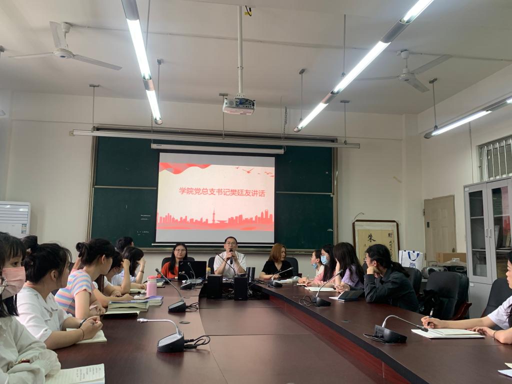 5月26日中午,外语与文化旅游学院学生党支部在教学楼B401召开学生党员思想作风纪律整顿大会。会议由学院专职组织员邓凯艳主持,学院党总支书记樊廷友,党总支副书记兼团总支书记王珍珍,学生党支部书记、支委、全体预备党员、发展对象参加会议。