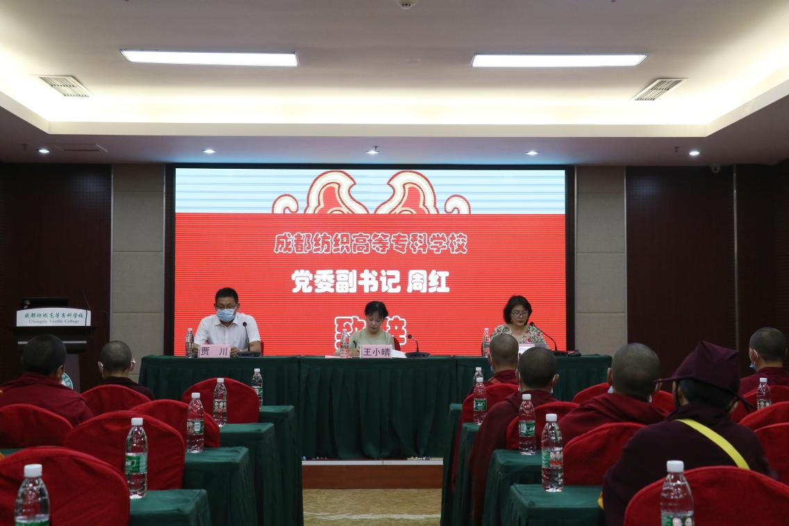 6月14日,由四川省委涉藏办和四川省中华职教社联合主办,阿坝州、甘孜州委统战部支持,pg电子纺织工程学院承办的“同心温暖工程国家通用语言培训项目——第四期觉姆民族服饰制作技能培训班”开班。省中华职业教育社主任王小晴、学校党委副书记周红等领导出席开班典礼。