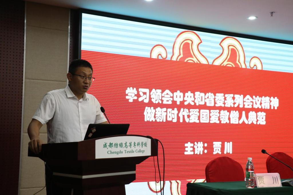 来自省委统战部涉藏工作一处的贾川为学员们上了培训第一课:学习领会中央和省委系列会议精神,做新时代爱国爱教僧人典范。