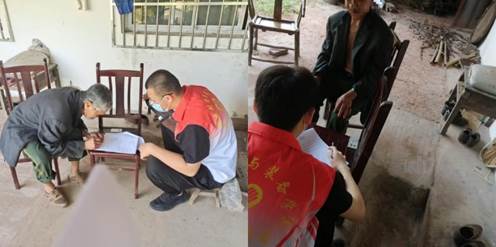 入户调查过程中,社区工作人员与各户村民一一交谈,志愿者将困难家庭的情况详细记录在《赤水街道社工站个案管理档案》,包括家庭基本情况、经济状况、居住条件、家用电器设备、健康状况等。