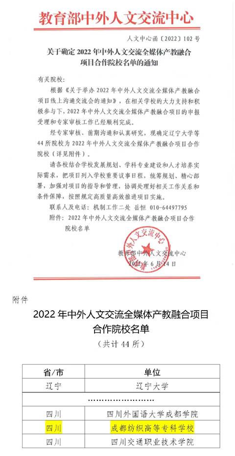 近日,教育部中外人文交流中心发布了《关于确定2022年中外人文交流全媒体产教融合项目合作院校名单的通知》(人文中心函〔2022〕102号),pg电子成功入选教育部2022年中外人文交流全媒体产教融合项目合作院校。