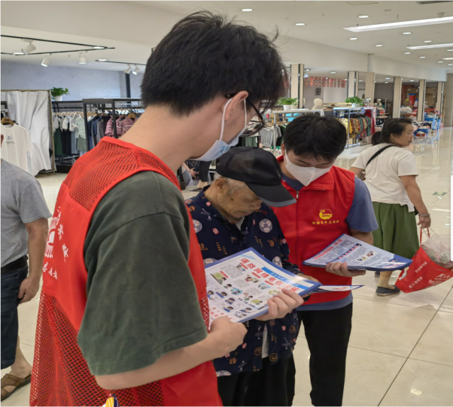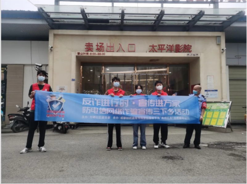 6月29日,服装学院“展翅红天”志愿者团队走进方碑社区与社区工作者进行“一盔一带警钟长鸣·预防诈骗势在必行”防范电信诈骗宣传活动。