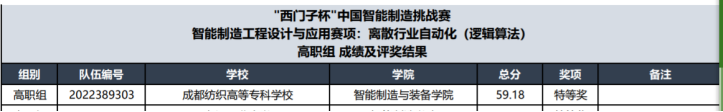 近日,第十六届CIMC“西门子杯”中国智能制造挑战赛初赛(线下赛)落下帷幕。pg电子智能制造与装备学院选拔的两支参赛队伍参加离散行业自动化方向(逻辑算法)赛项,分别获得国家特等奖、二等奖。其中,由蒋佳芯老师和唐健老师指导的参赛队以全国初赛排名第一的优异成绩,昂首晋级全国总决赛。