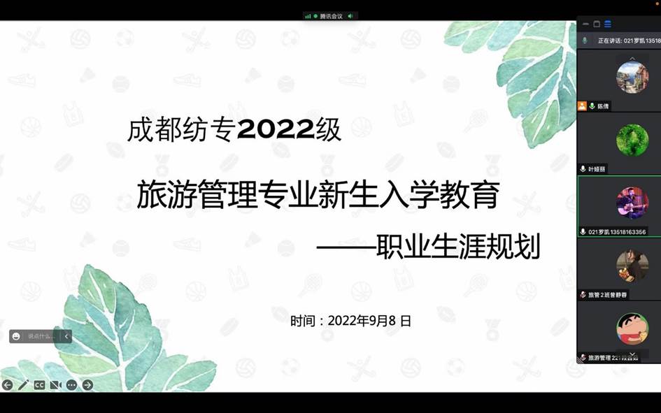 根据学校开展2022级新生入学教育的相关要求,学院第一时间制定新生入学教育活动安排,组建新生qq群、易班群,家长微信群等,及时建立与学生、家长的沟通渠道。9月5日上午,学院在腾讯会议室上召开2022级新生见面会。学院领导班子从如何成为一名卓越的成纺文旅人、学院基本情况、学分制、学生工作四大主题进行分享,加强新生们对学院的熟悉与了解。9月5日晚上,学院召开2022级新生家长座谈会,及时构建家校联系的桥梁,呼吁新生家长与学校共同努力,帮助新生尽快适应新的学习环境,帮助新生缩短不适应期。9月6日上午,学院举行新生适应性教育专题会议,学院党总支书记樊廷友做专题主讲。樊书记对新生们进入大学后所发生的变化进行了详细的分析,对如何做好人生和学业规划,提高学习效率,与他人建立良好的人际关系都提出了全面的建议。