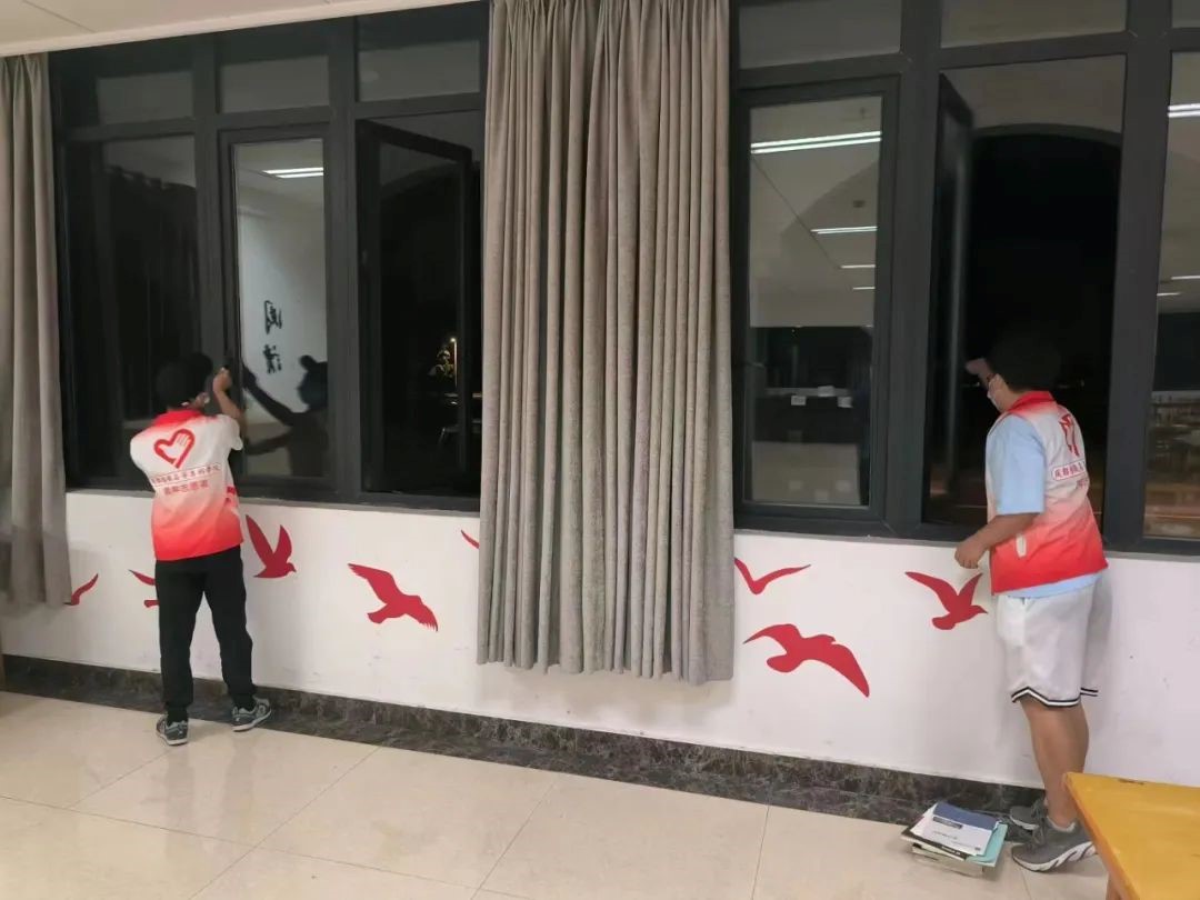 在校内,师生志愿者们在每日的核酸检测点,提醒同学们佩戴口罩、有序排队,并保持间距,是疫情防控“前哨兵”;他们扫码登记信息,开展防疫知识宣传。