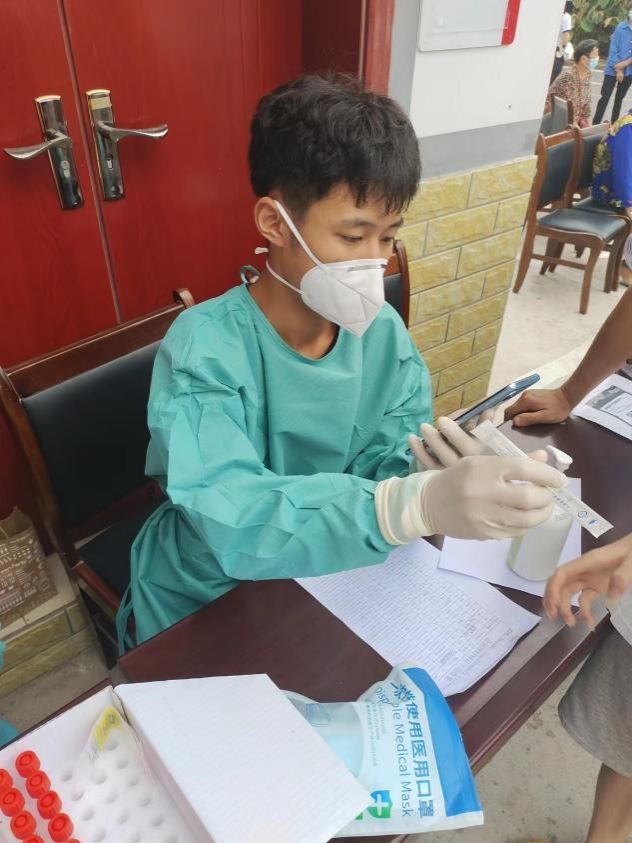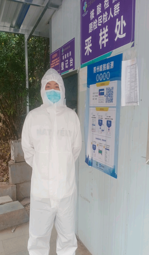 汽修201的张波同学在贵州省仁怀市茅台镇卫生院,担任整个小镇的核酸采集和秩序维持的任务。在本次志愿者活动中,他收获到了许多:“在做防疫志愿者期间,我要负责整个小镇人们的核酸采集,在炎热的天气之下,穿着防护服热上加热,由于太热导致皮肤泛红,长痘。大爷和大妈们不会用手机,我耐心引导,帮助他们,收获了感谢,也锻炼了自己。我更加深刻感受到防疫工作者的辛苦,也庆幸自己生在中国,在这片温暖的土地,相信我们总有一天会战胜疫情!”