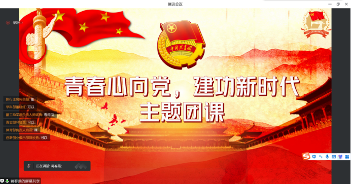 9月30日,服装工程与设计学院团总支学生会通过腾讯会议线上开展“青春心向党,建功新时代”主题团课学习暨九月干部例会。团总支学生会指导教师蒋春燕和团学会全体成员参加会议,活动由学院团总支副书记赵苗苗主持。