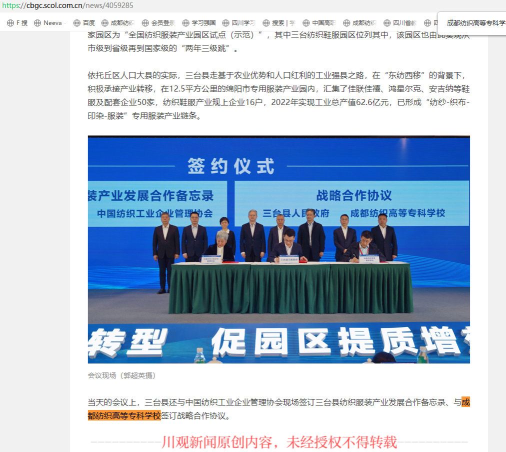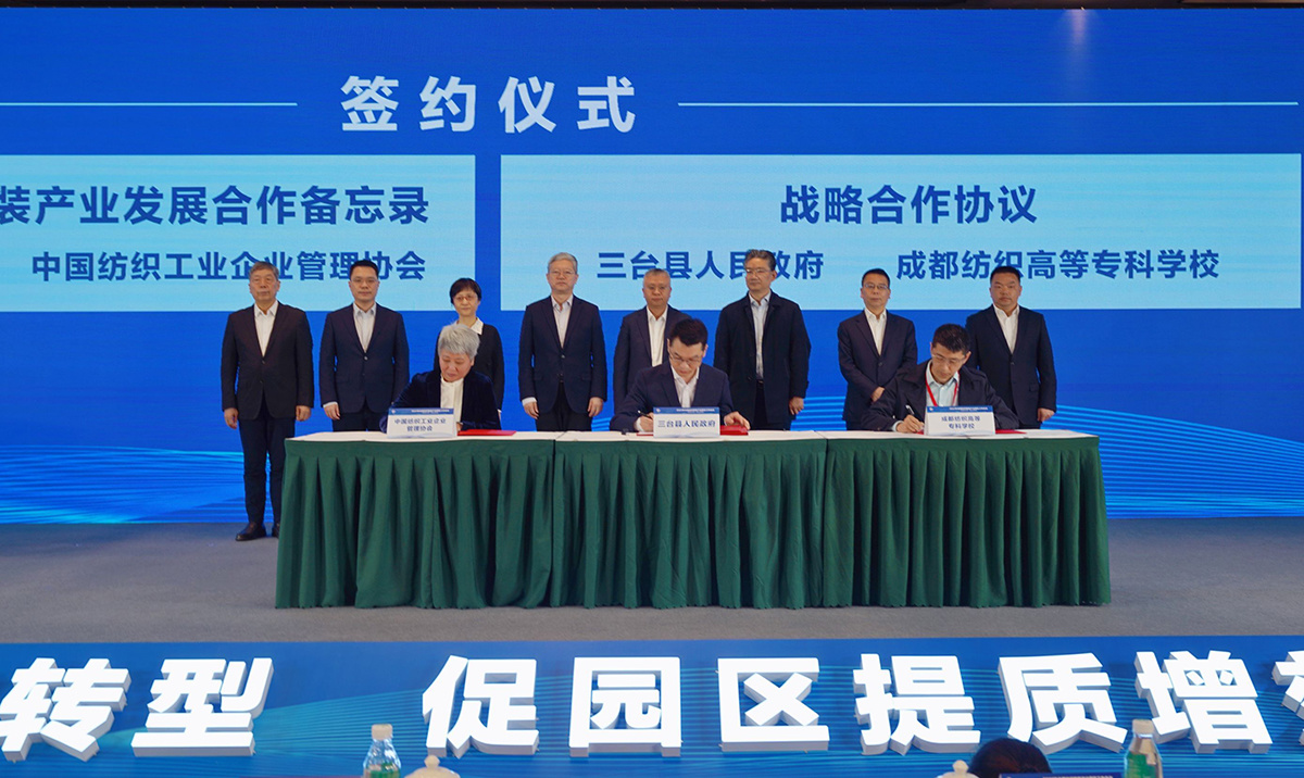当天的会议上,三台县还与中国纺织工业企业管理协会现场签订三台县纺织服装产业发展合作备忘录、与pg电子官方网站签订战略合作协议。